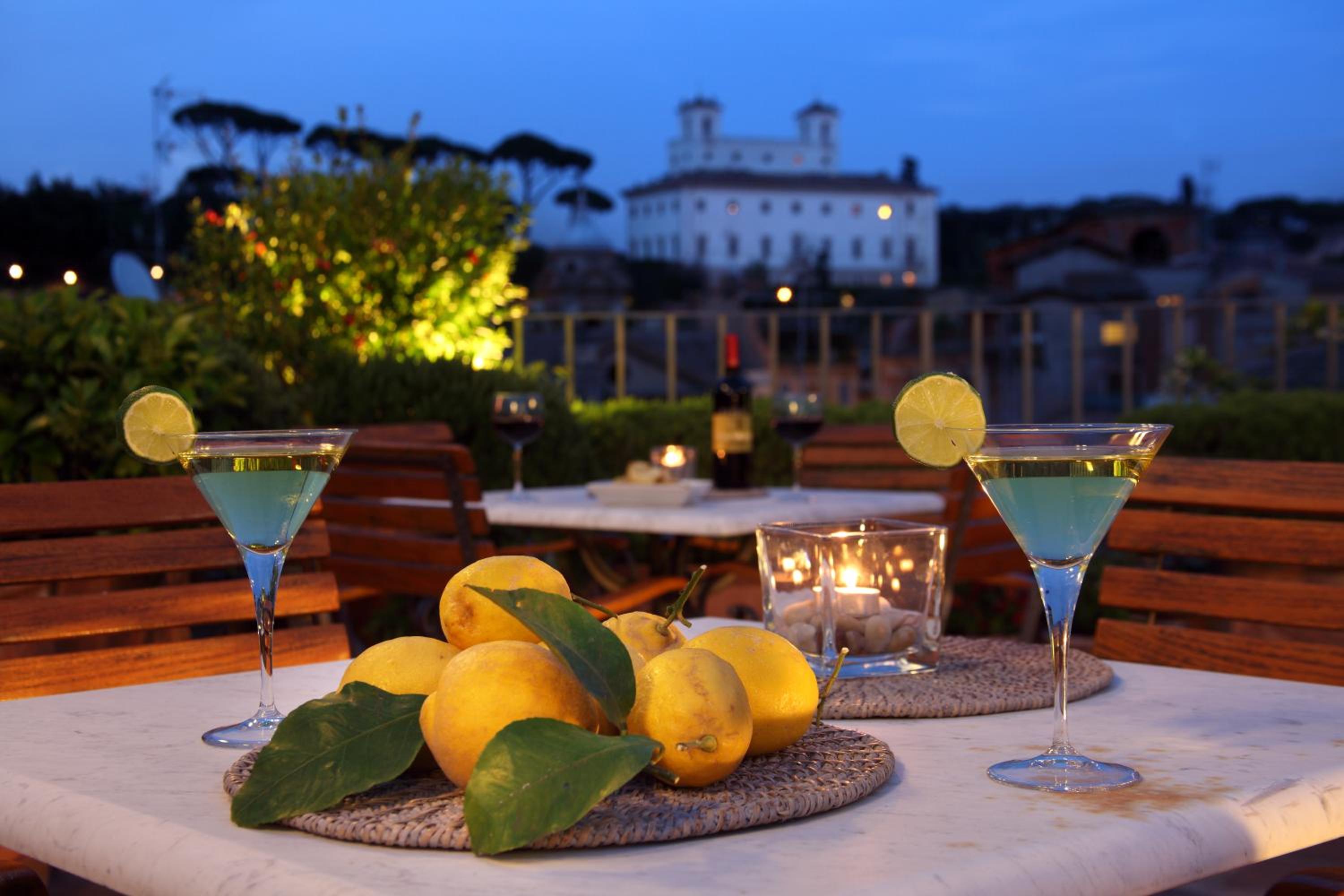 Teure Getränke auf der Dachterrasse.
