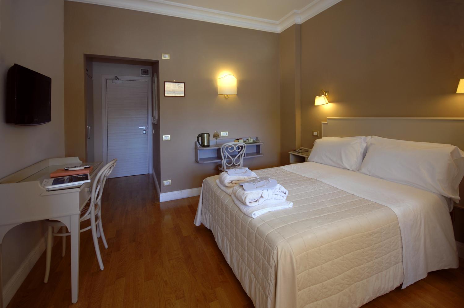 Camera pulite ma datate, senza un bollitore per thè o caffè e nemmeno una bottiglia di acqua offerta