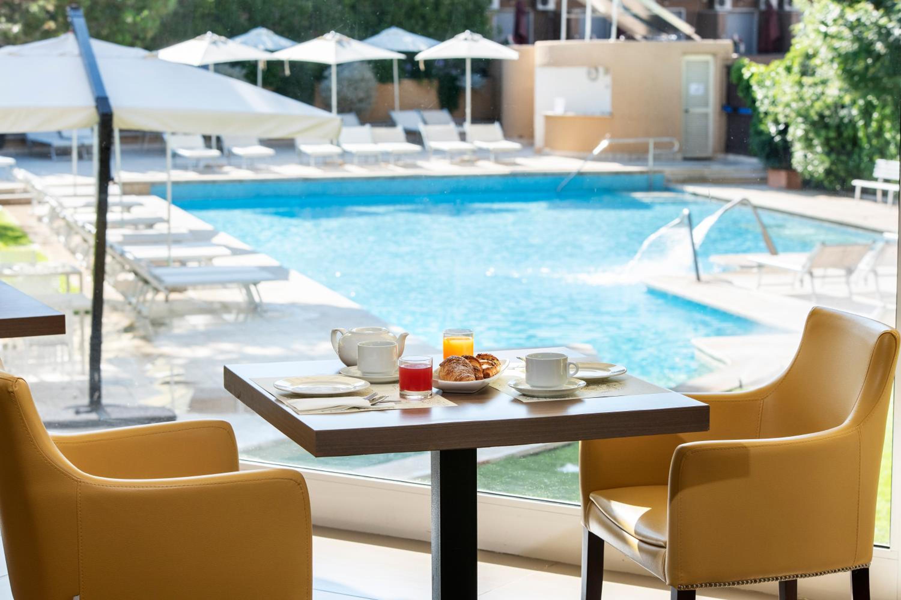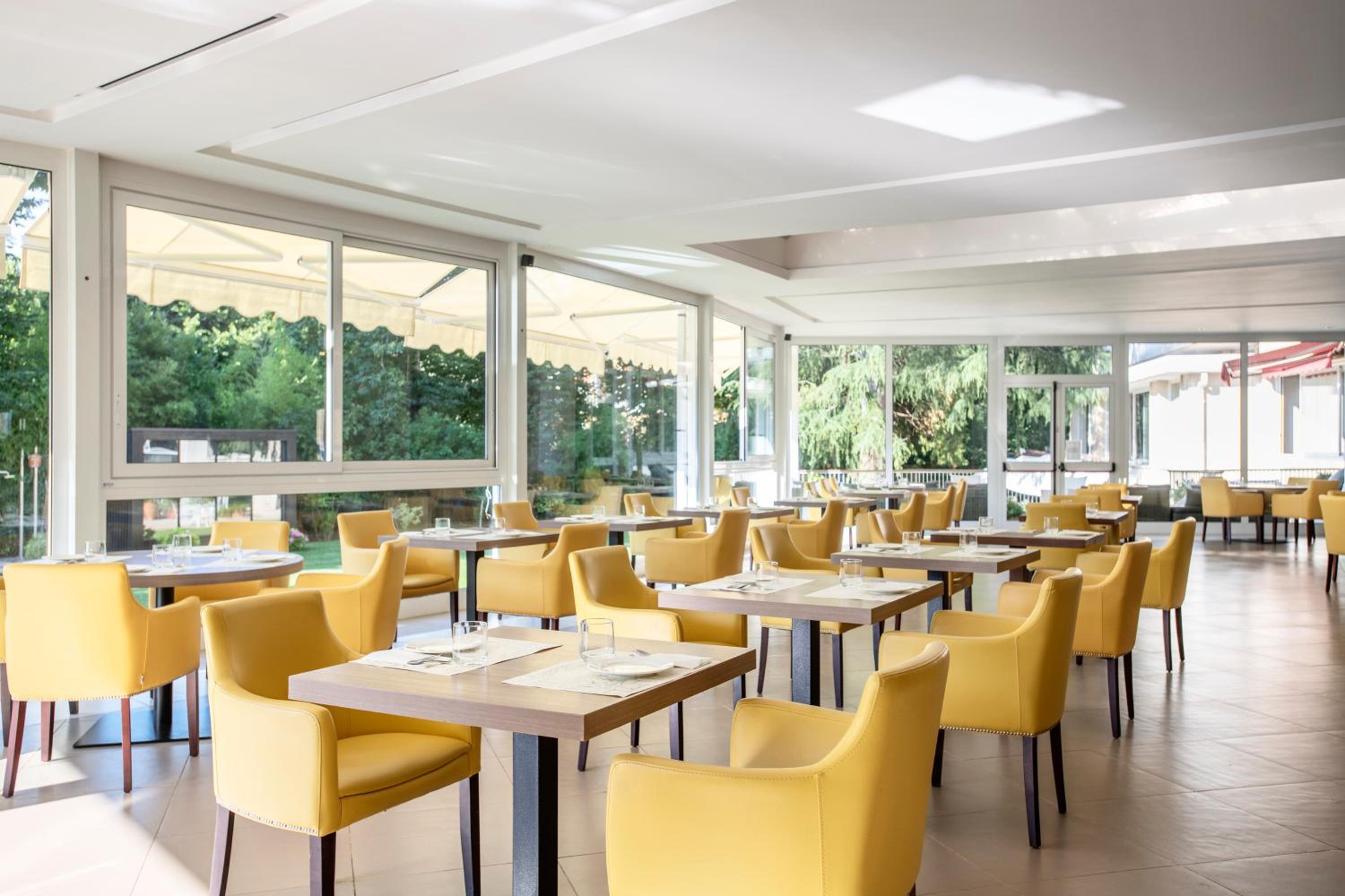 Indulge in a buffet breakfast at La Veranda with park views, and savor snacks and drinks at the bar. The Le Ginger Restaurant offers local and Italian specialties in an elegant atmosphere, including gluten-free options.