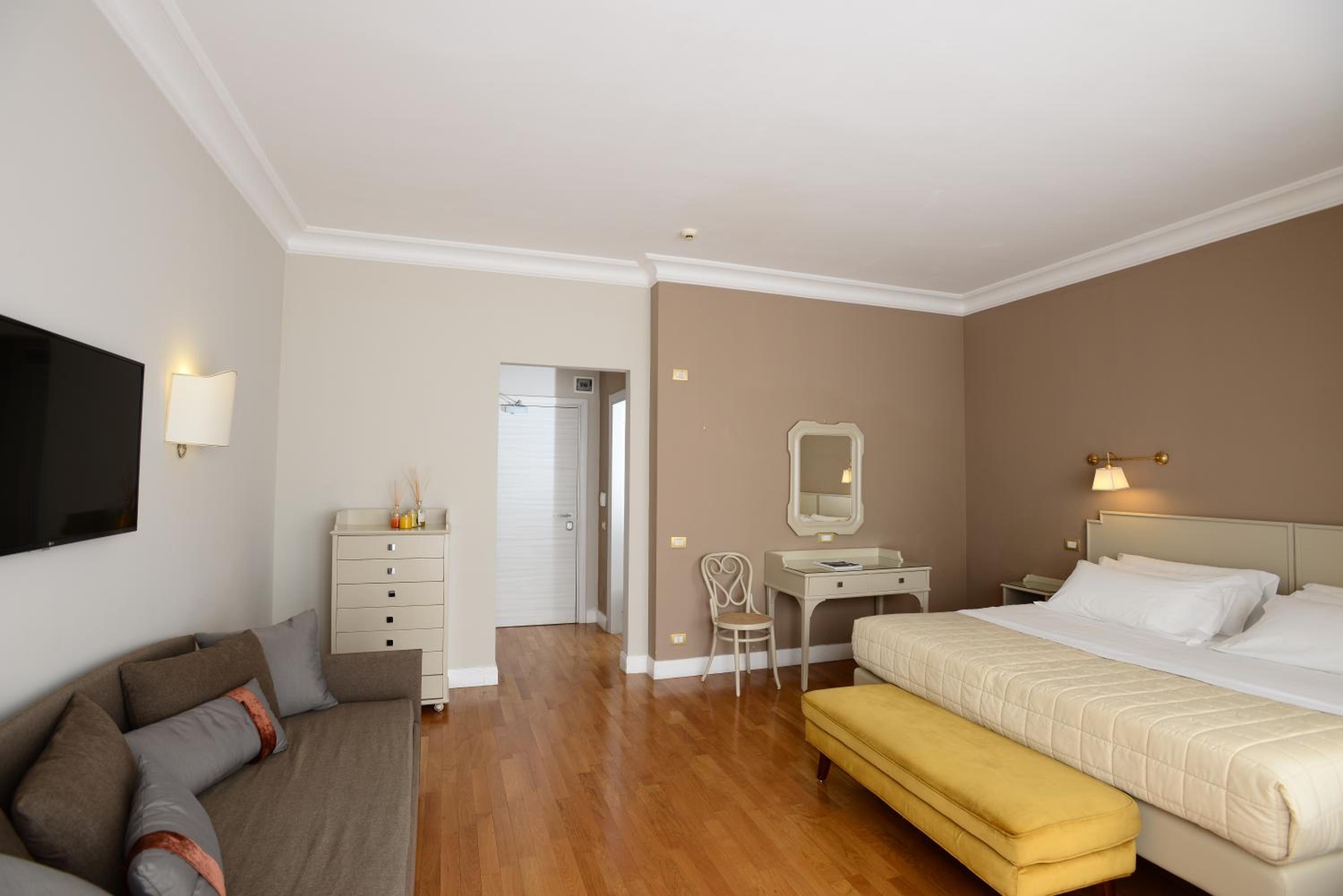 La camera, sebbene spaziosissima, l'avevamo scelta con balcone per goderci anche un relax all'esterno, ma la posizione (primo piano) del balcone con affaccio sul retro, vista palazzine senza alcuna vista gradevole, ce ne ha impedito di fatto di goderne.