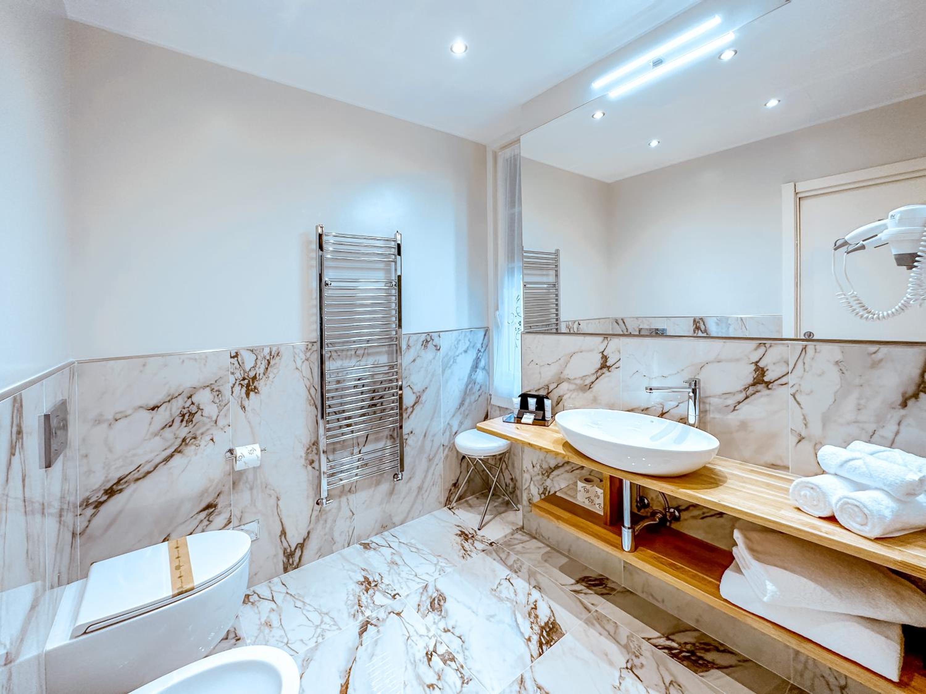 Our room was spacious, the bathroom was modern and large.