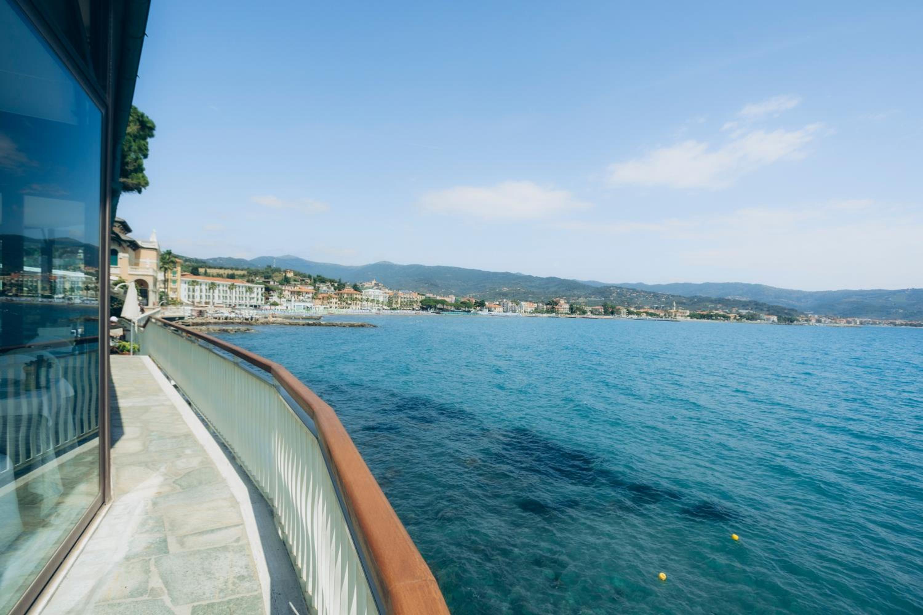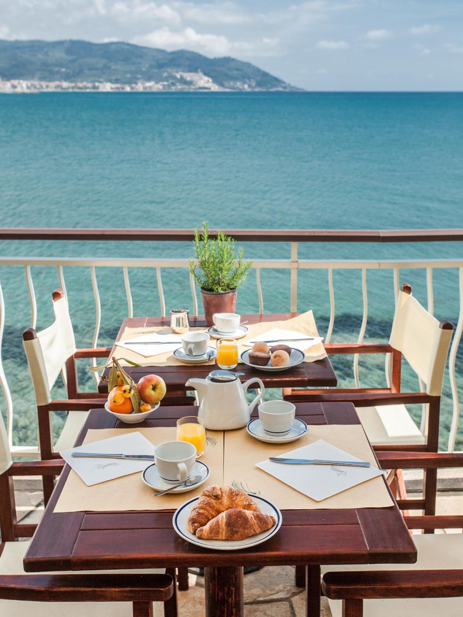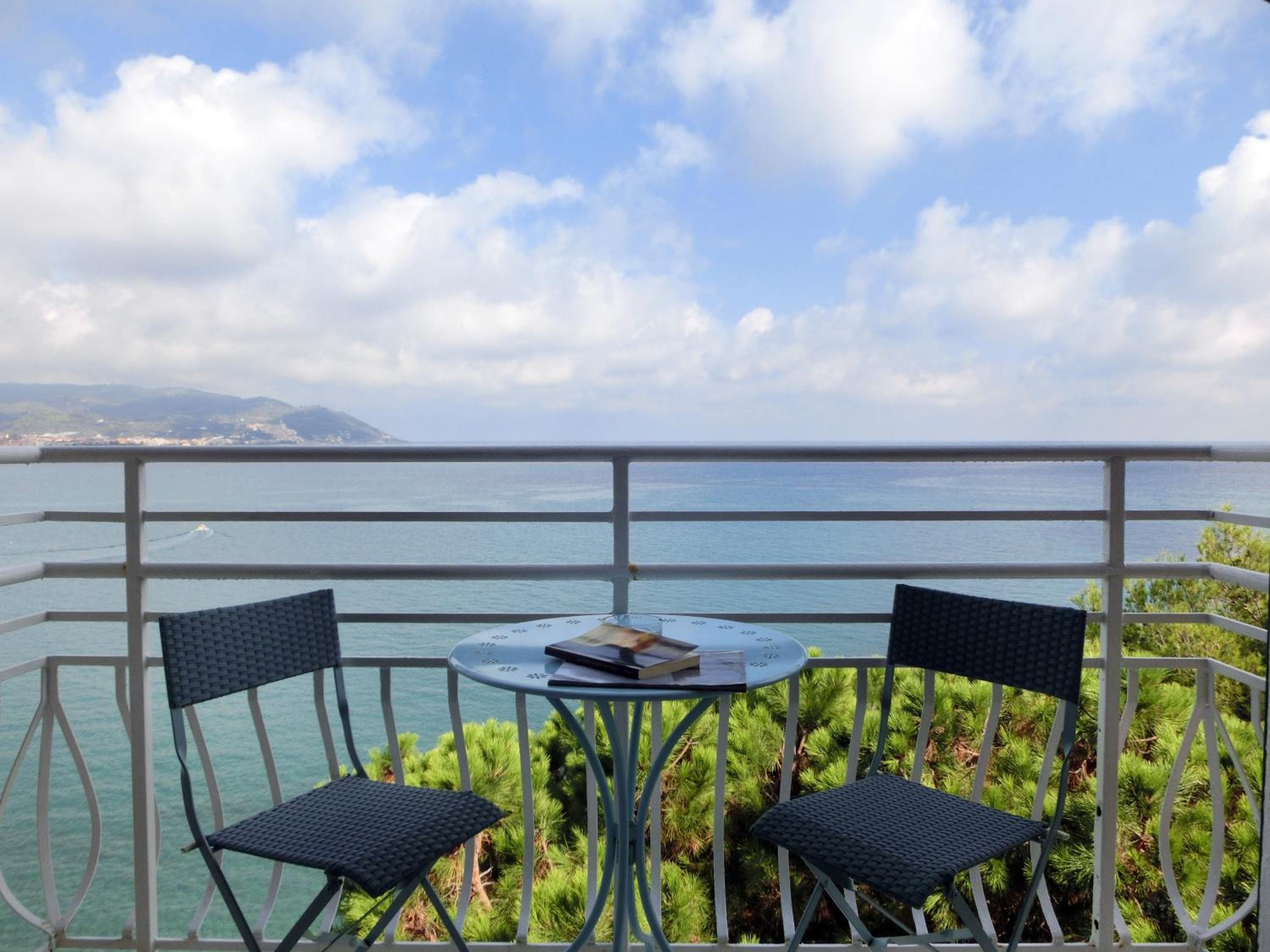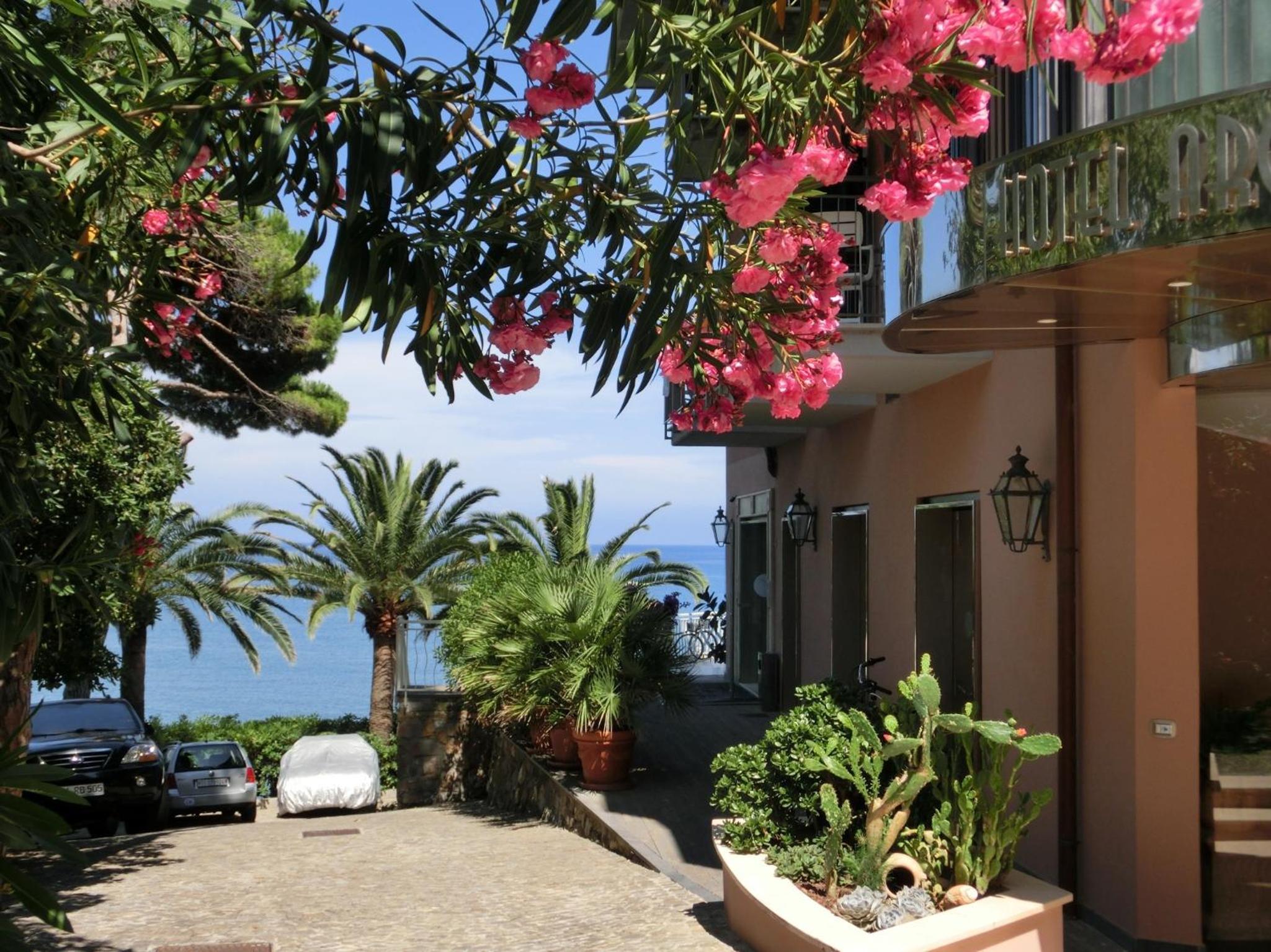 Stunning Seafront Location: Hotel Arc en Ciel offers a breathtaking view of the bay of Diano Marina, surrounded by lush pines and palm trees.