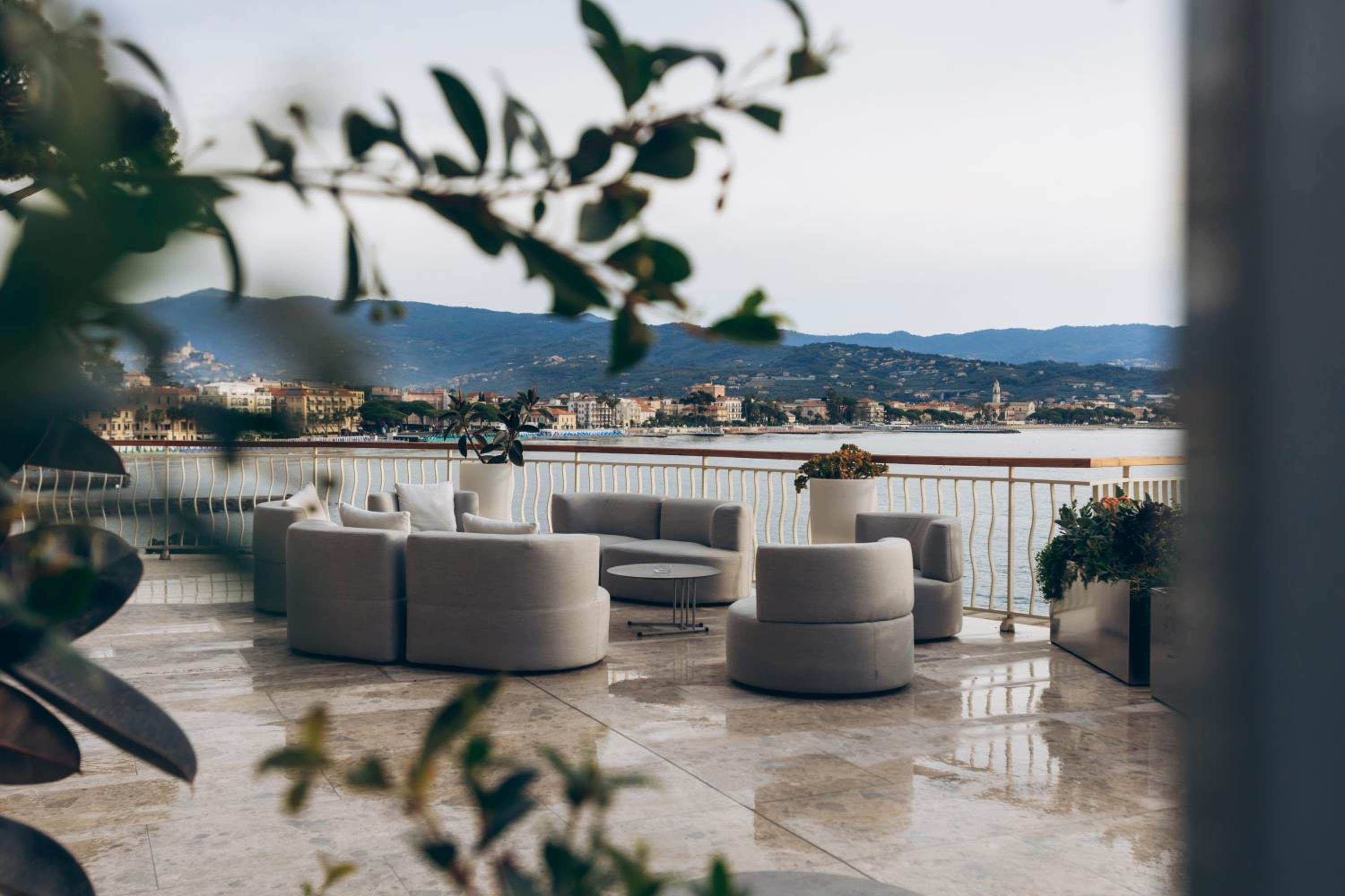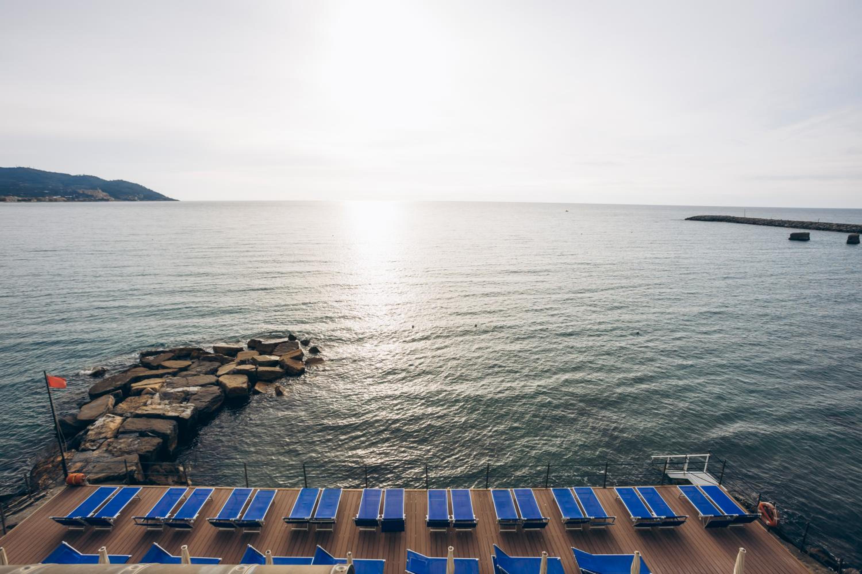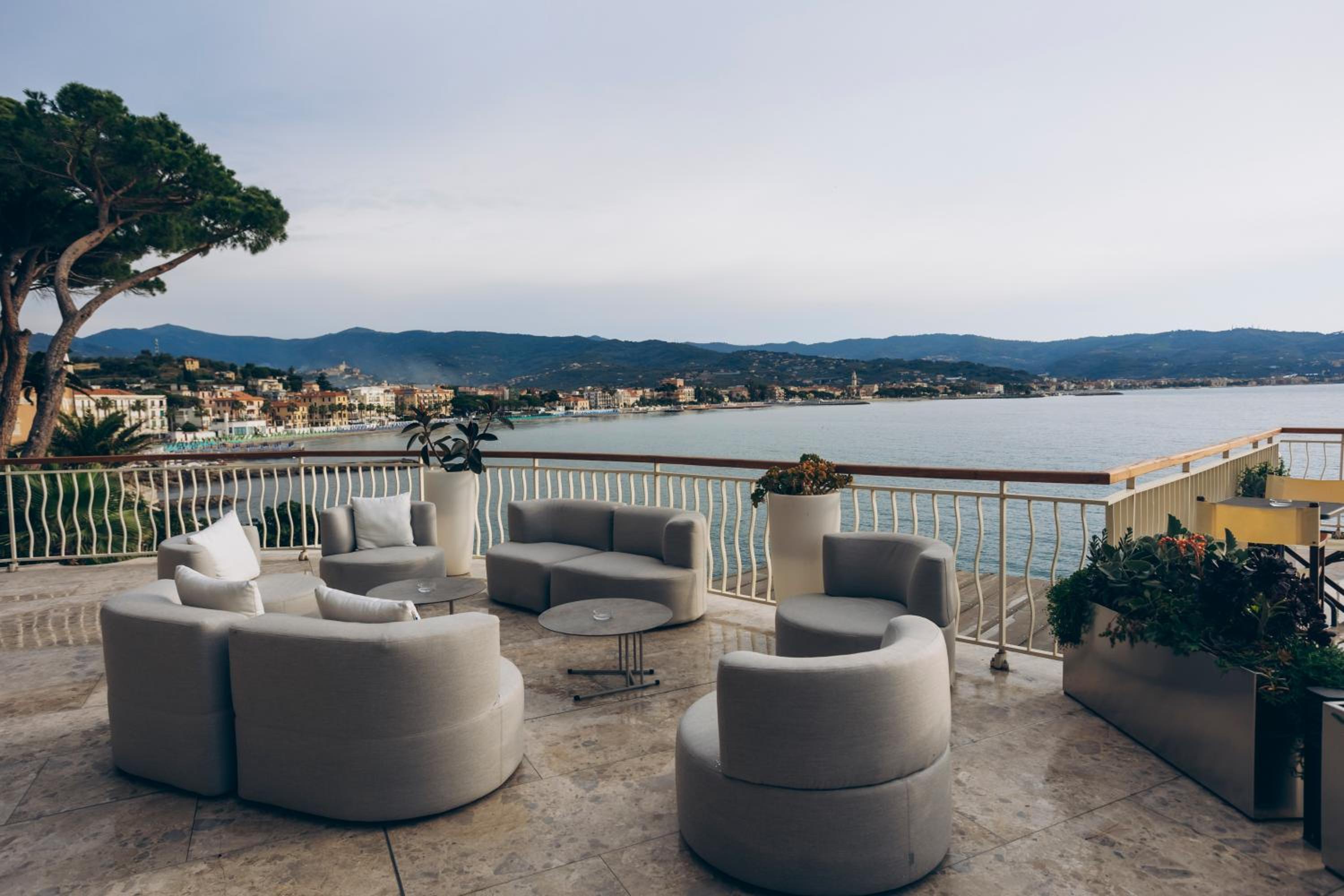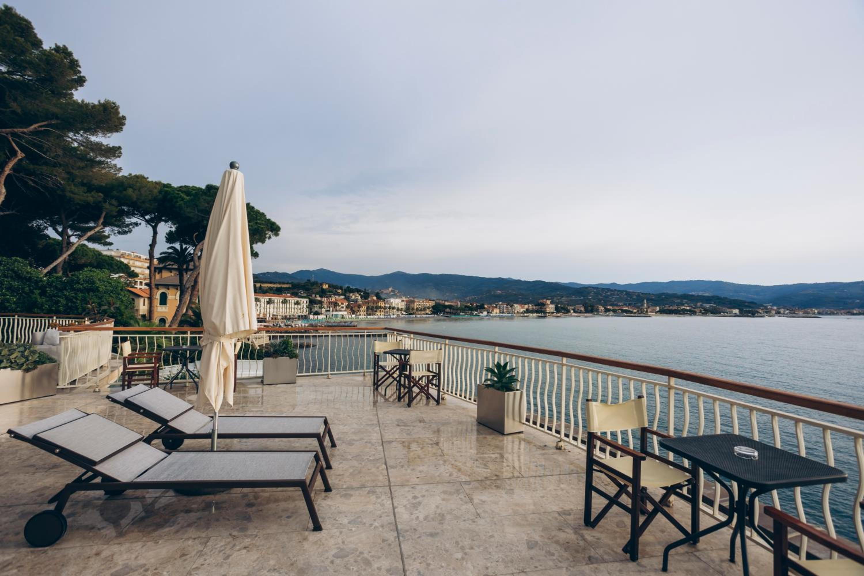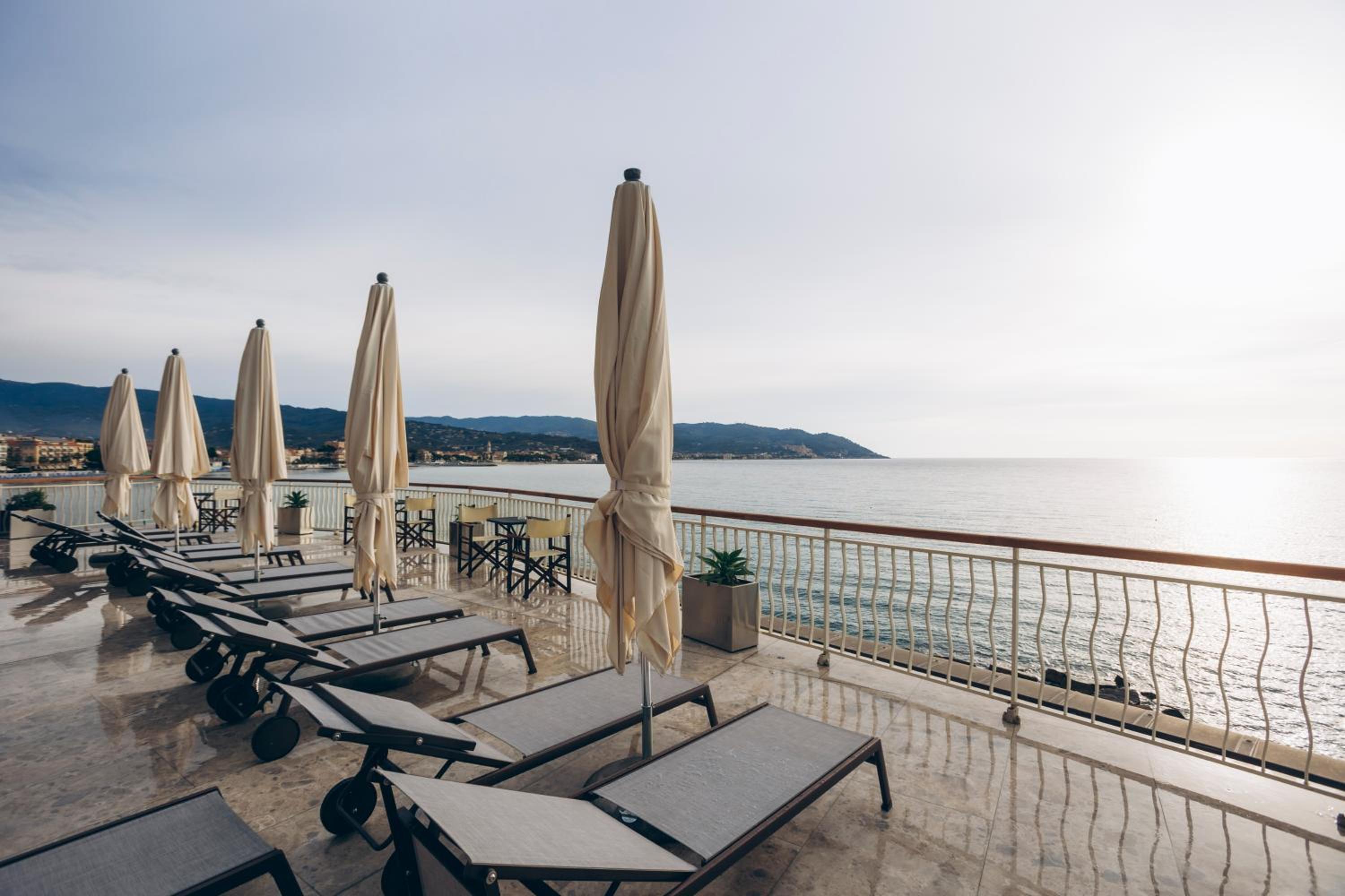 Stunning Seafront Location: Hotel Arc en Ciel offers a breathtaking view of the bay of Diano Marina, surrounded by lush pines and palm trees.
