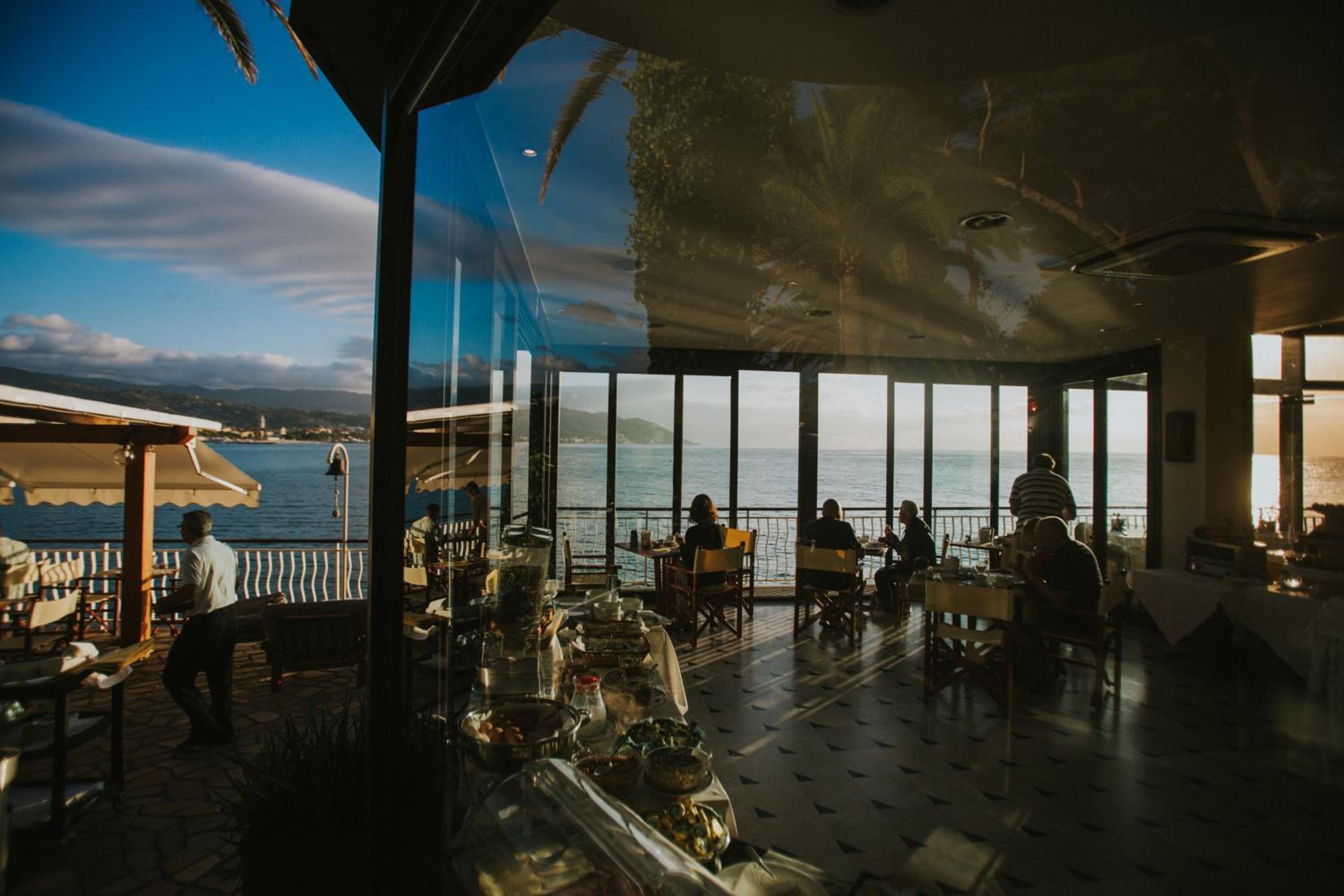 Un cadre enchanteur sur une baie magnifique. Une salle à manger avec vue panoramique qui plonge dans la méditerranée, sensationnel. Un personnel qui parle français et qui prend beaucoup de plaisir à échanger. Avec un budget fin de saison très raisonnable, ce qui ne gache rien.