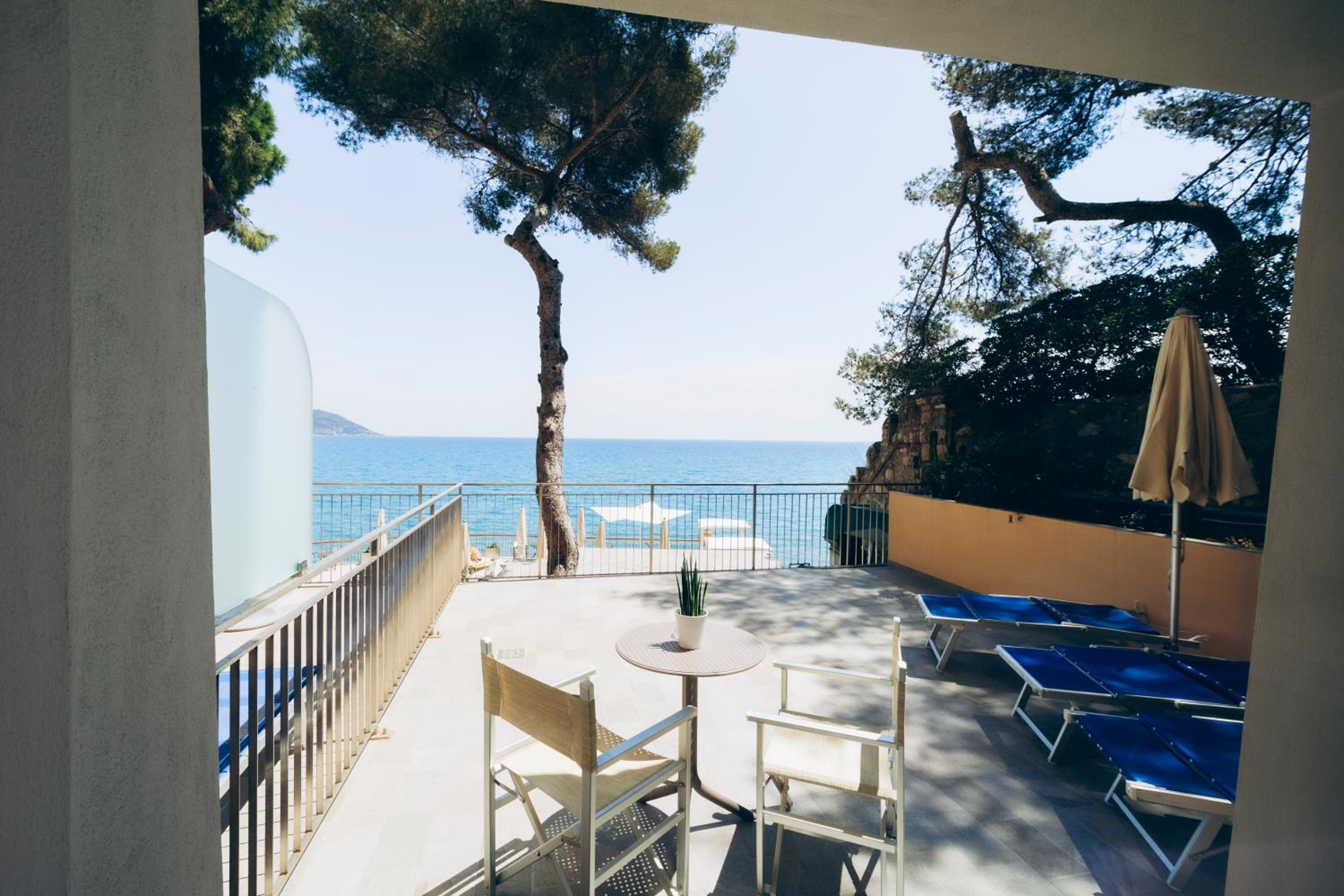 L'emplacement au bord de la mer, le calme et le bruit des vagues, la vue mer, l'accueil et la gentillesse du personnel, les prestations (petit-déjeuner, restaurant, prêt de vélos...). Tout était perfetto !!! Grazie per tutti !!