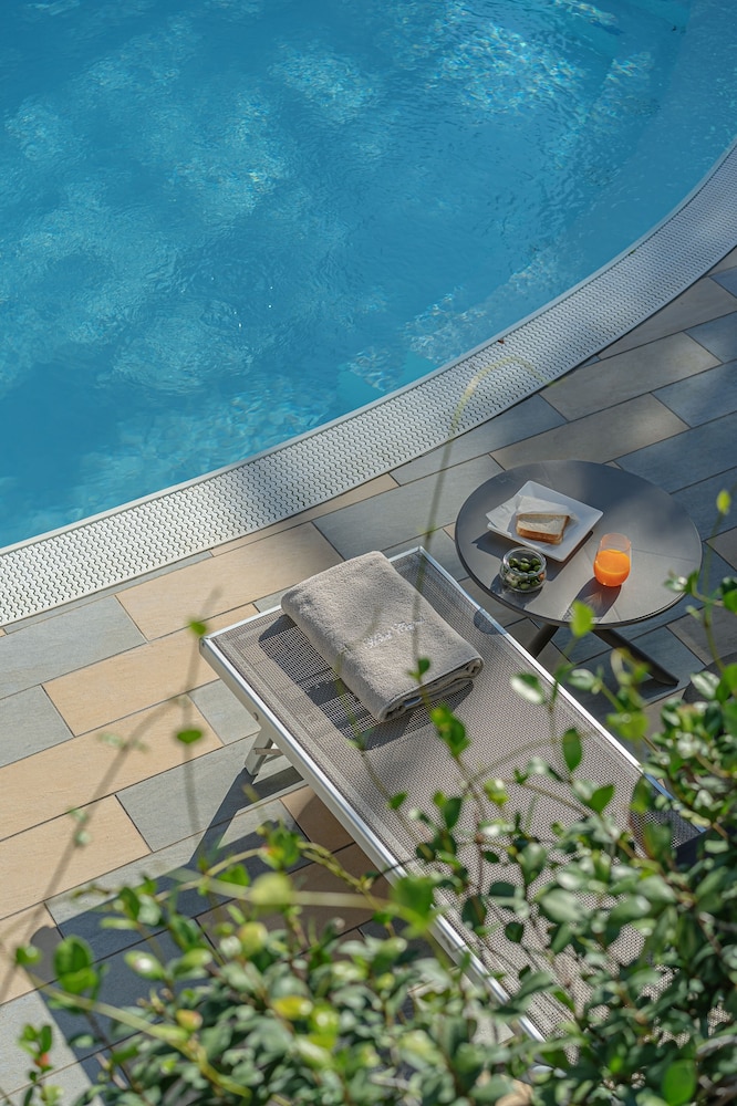 Pool area was quite small but well kept, with comfortable sun loungers and deck chairs. Sun moved around in early October so not always in the sun. Water was said to be very cold. Also a garden area above.