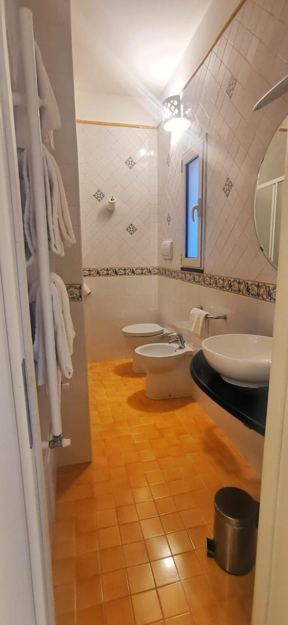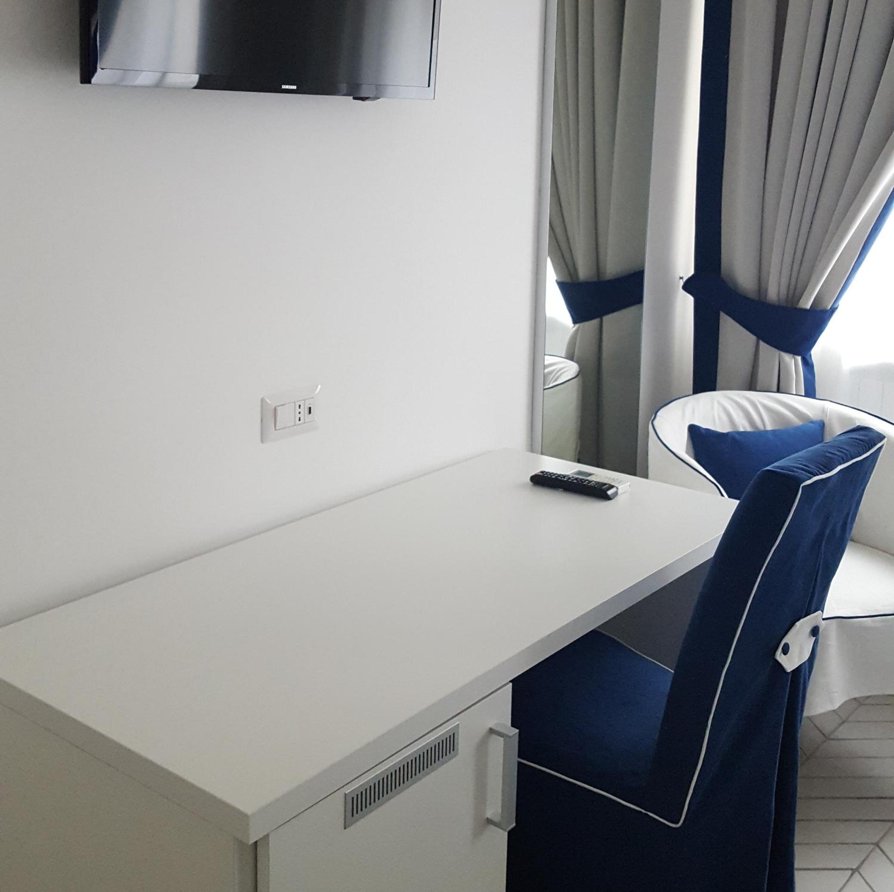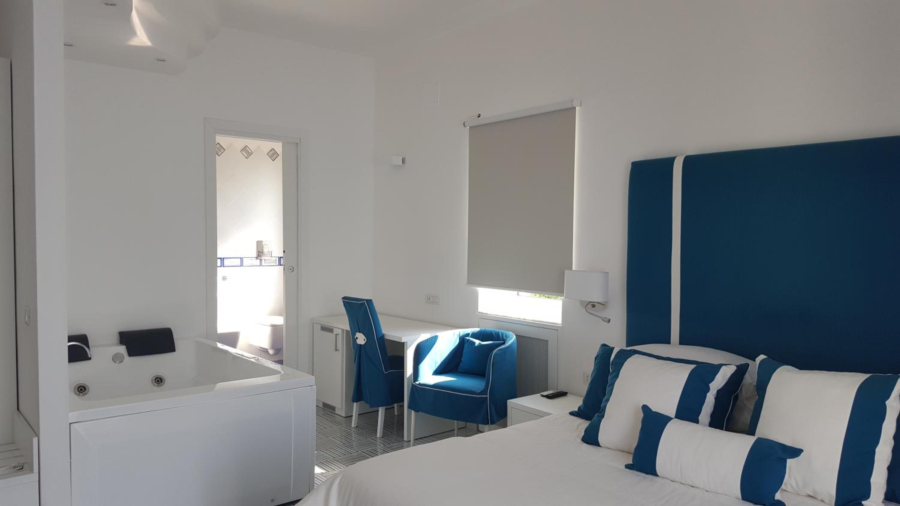 La camera era pulita e accogliente,con balcone arredato di tavolino e sedie che davano sul mare.