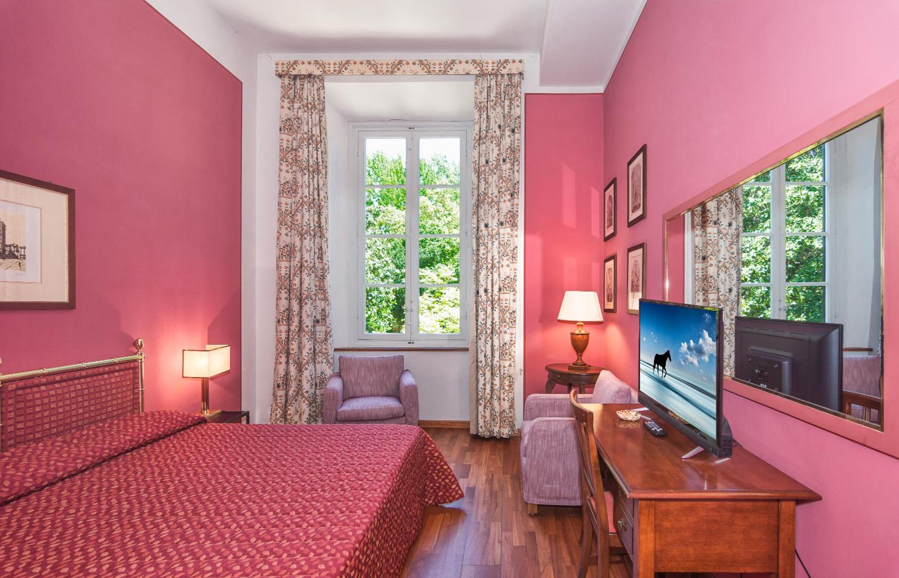Villa La Principessa offers a unique blend of history and luxury. The 13th-century manor house, once home to the Duke of Lucca, now features modern amenities like air conditioning and Wi-Fi in its traditionally-furnished rooms. Some rooms even boast charming wood-beamed ceilings and lavish wallpaper.