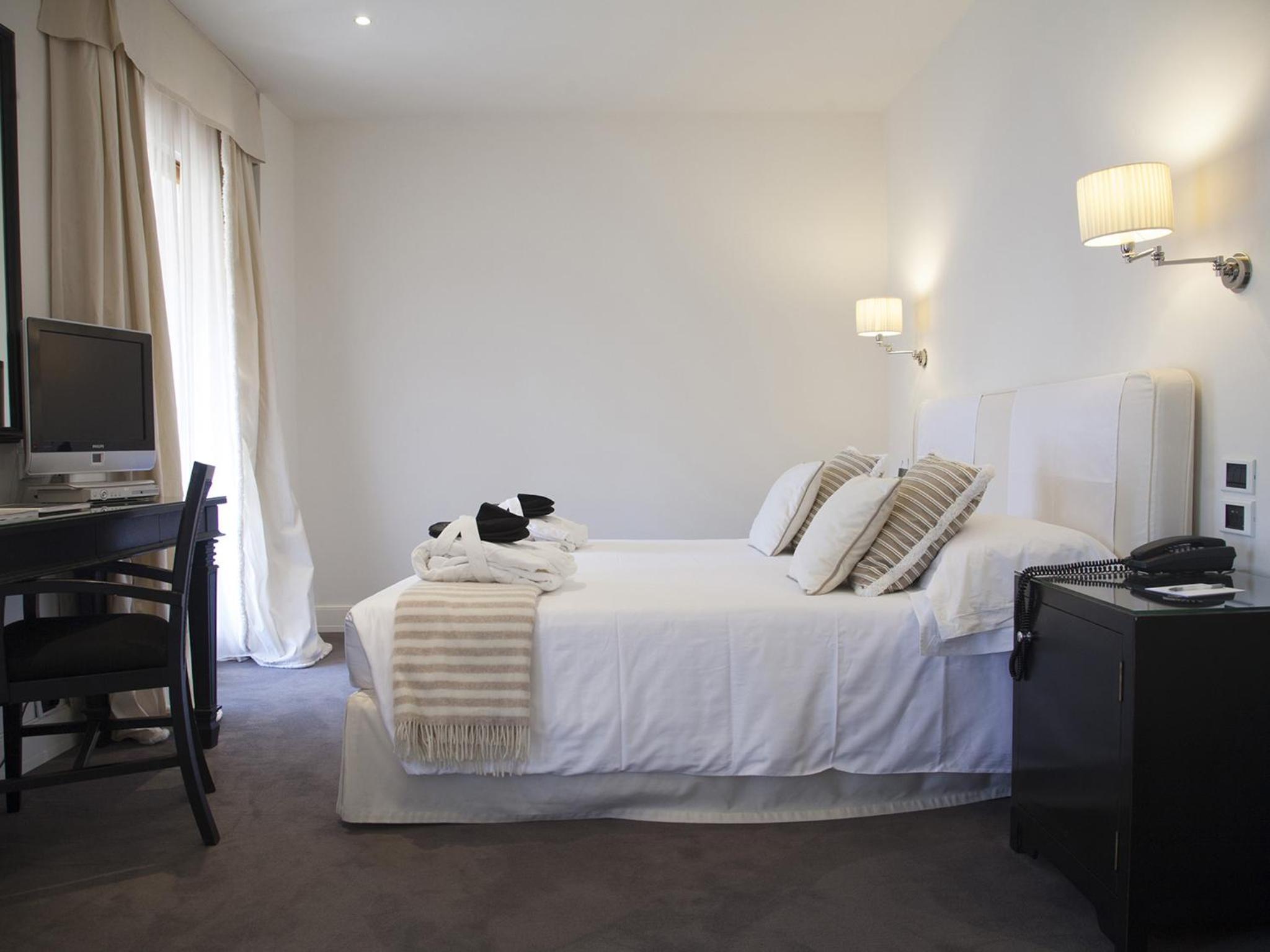 Indulge in spacious rooms with elegant furnishings and balconies offering stunning views of the gardens or the pool area. Enjoy modern amenities such as air conditioning, free WiFi, and Sky TV for a comfortable stay.