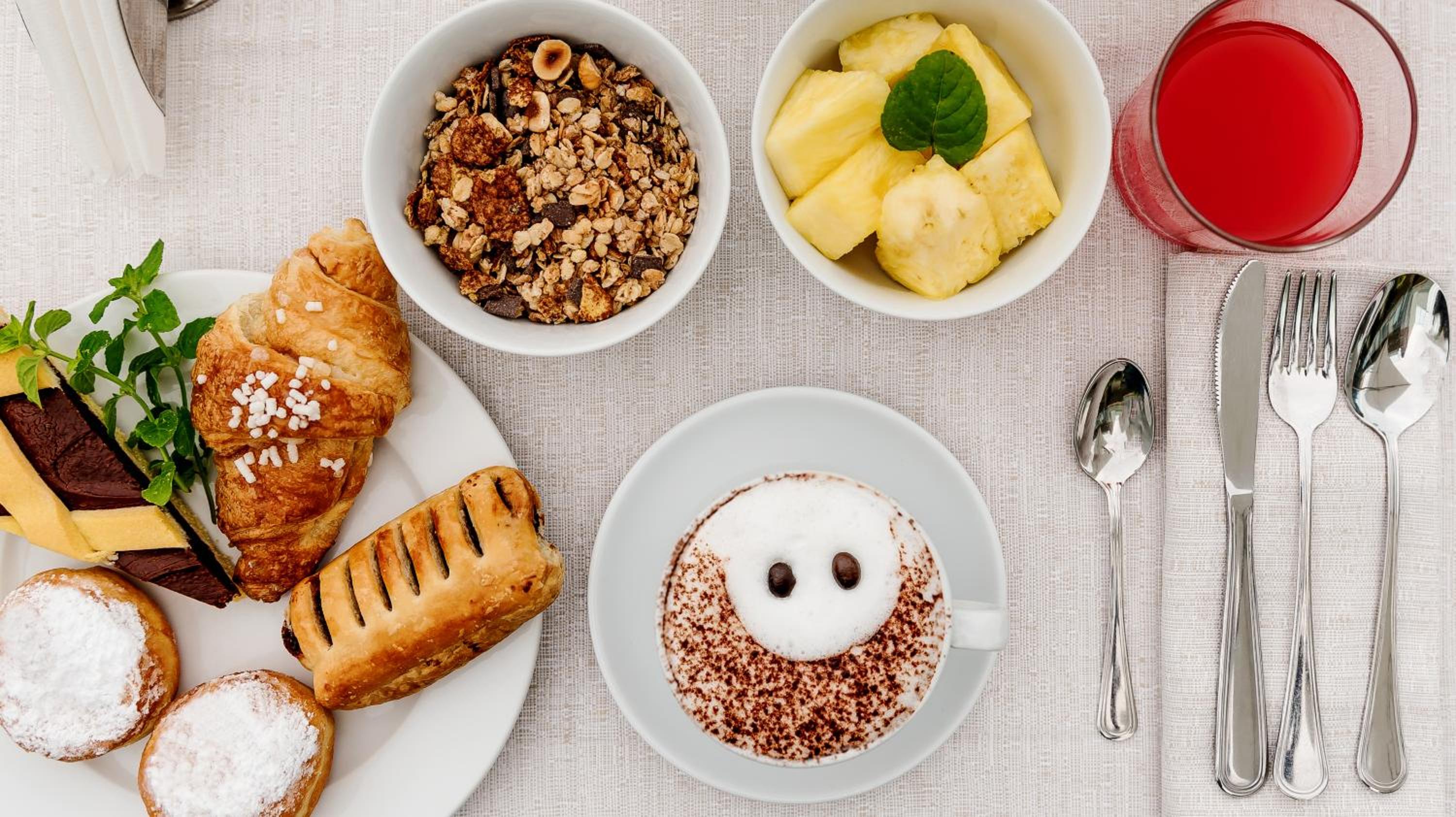 Ottima la colazione e la possibilità di avere estratti di frutta. Ottima scelta di dolce e salato.