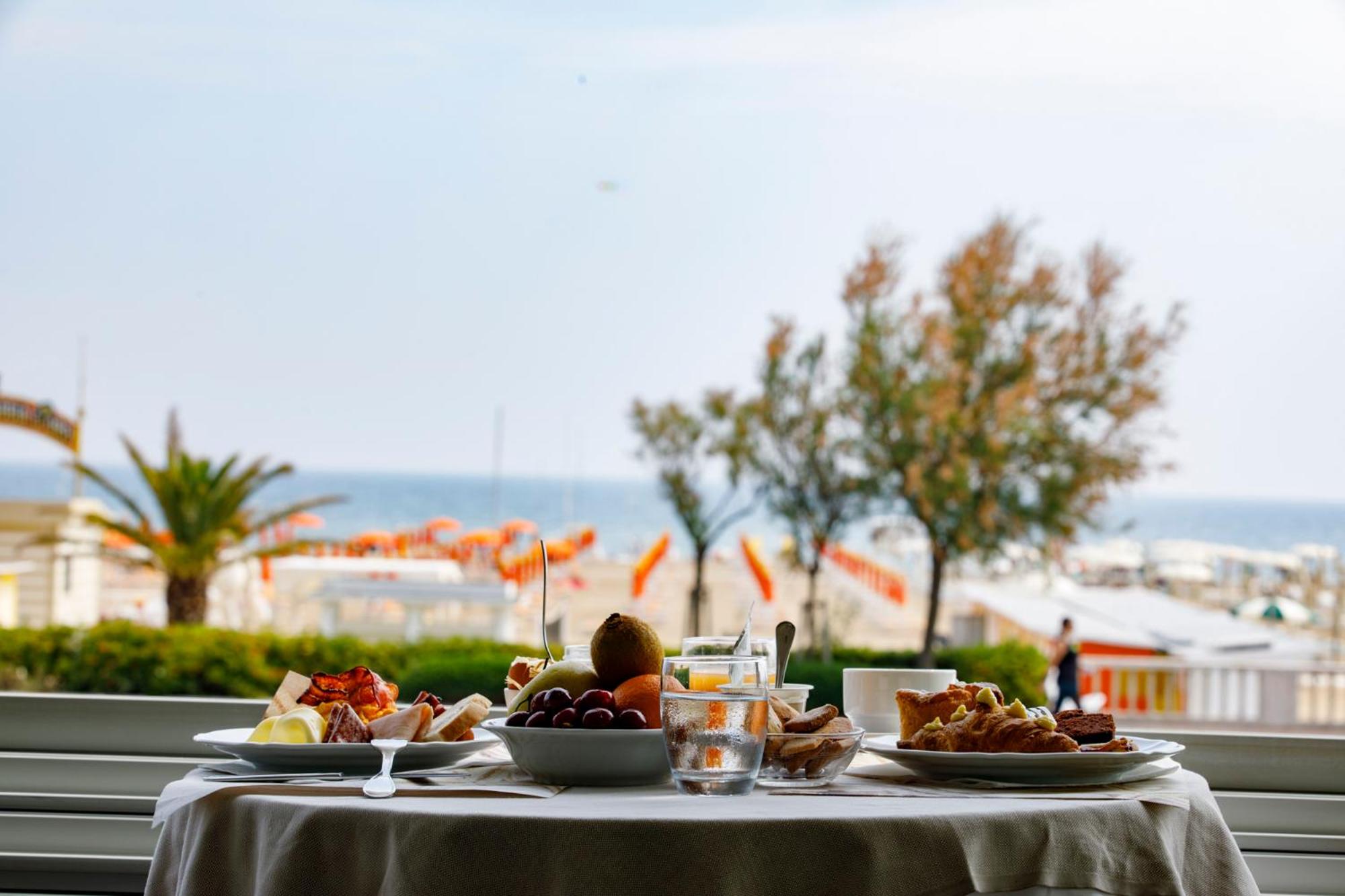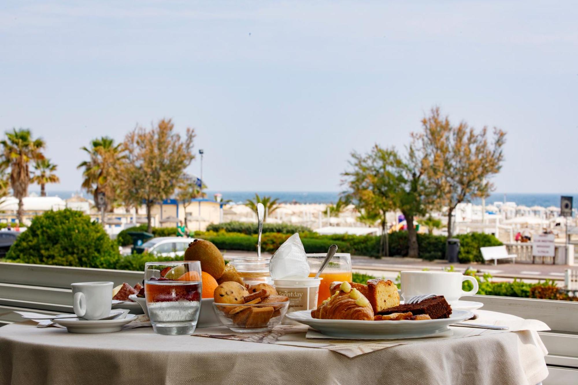Buona posizione vista mare, colazione con varie portate sia dolce che salato idem per le bevande, tutto addolcito dalla gentilezza dei camerieri!!!!!