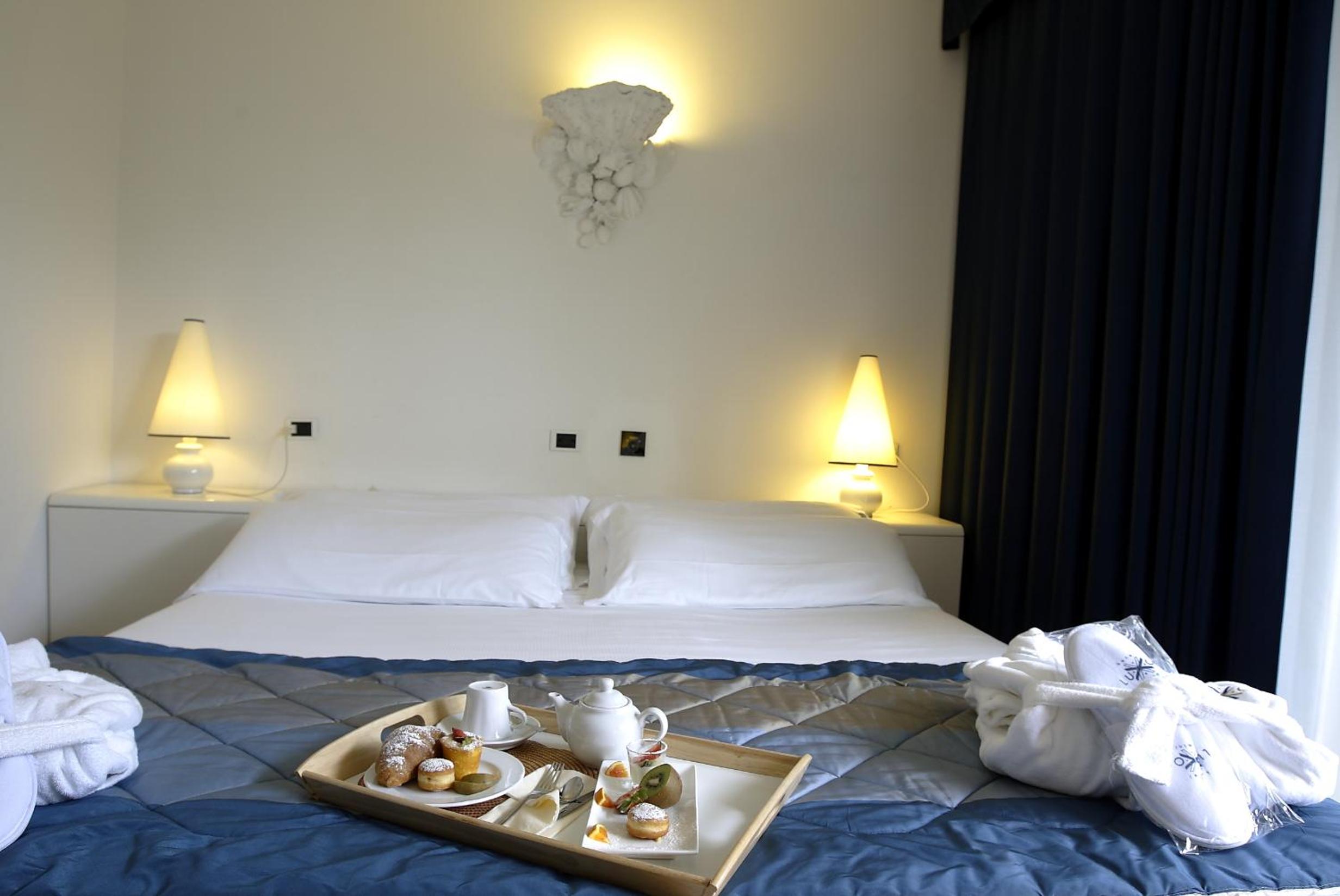 Start your day at The Luxor with a delightful buffet breakfast served in the Sala delle Conchiglie lounge. Indulge in a selection of sweet and savory treats, including freshly baked goods and a variety of hams. The perfect way to energize before exploring Rimini.
