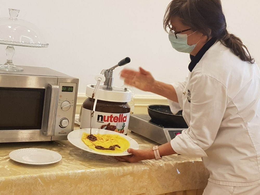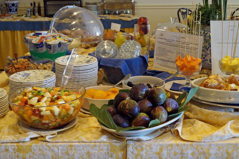 We had booked a sea view with balcony ( a must ) and it didn’t disappoint. The room was spotless( and I’m fussy🤔) the view was terrific and the beds are so comfortable. Breakfast has to be seen to be believed!! There is so much food on offer each morning that you would have to stay for 3 weeks to try everything. Cereals fruits yoghurts cheeses hams salami’s fresh breads eggs and vegetables. There is also a lovely hot buffet. The whole experience is rounded off by fresh home made cakes and pastries courtesy of ‘ Nonna’ who bakes every morning. Do not stay here if you are ‘watching your weight’😌😌