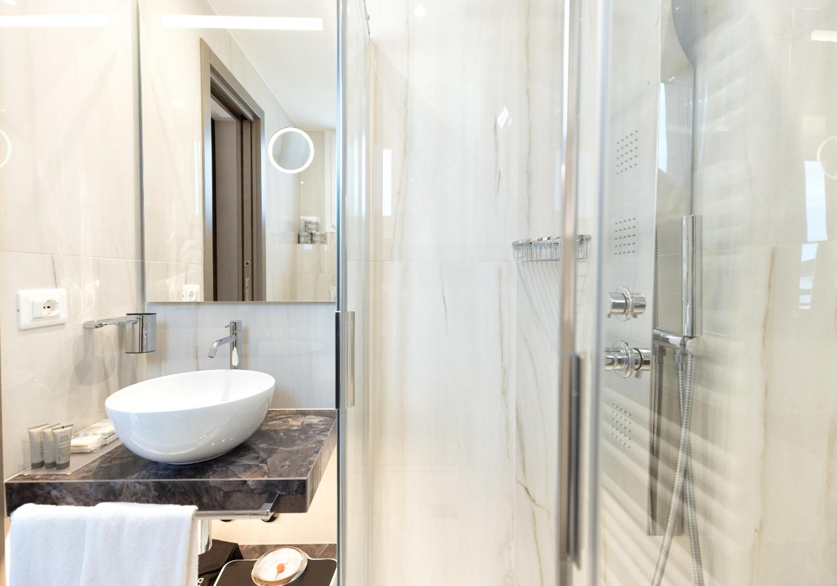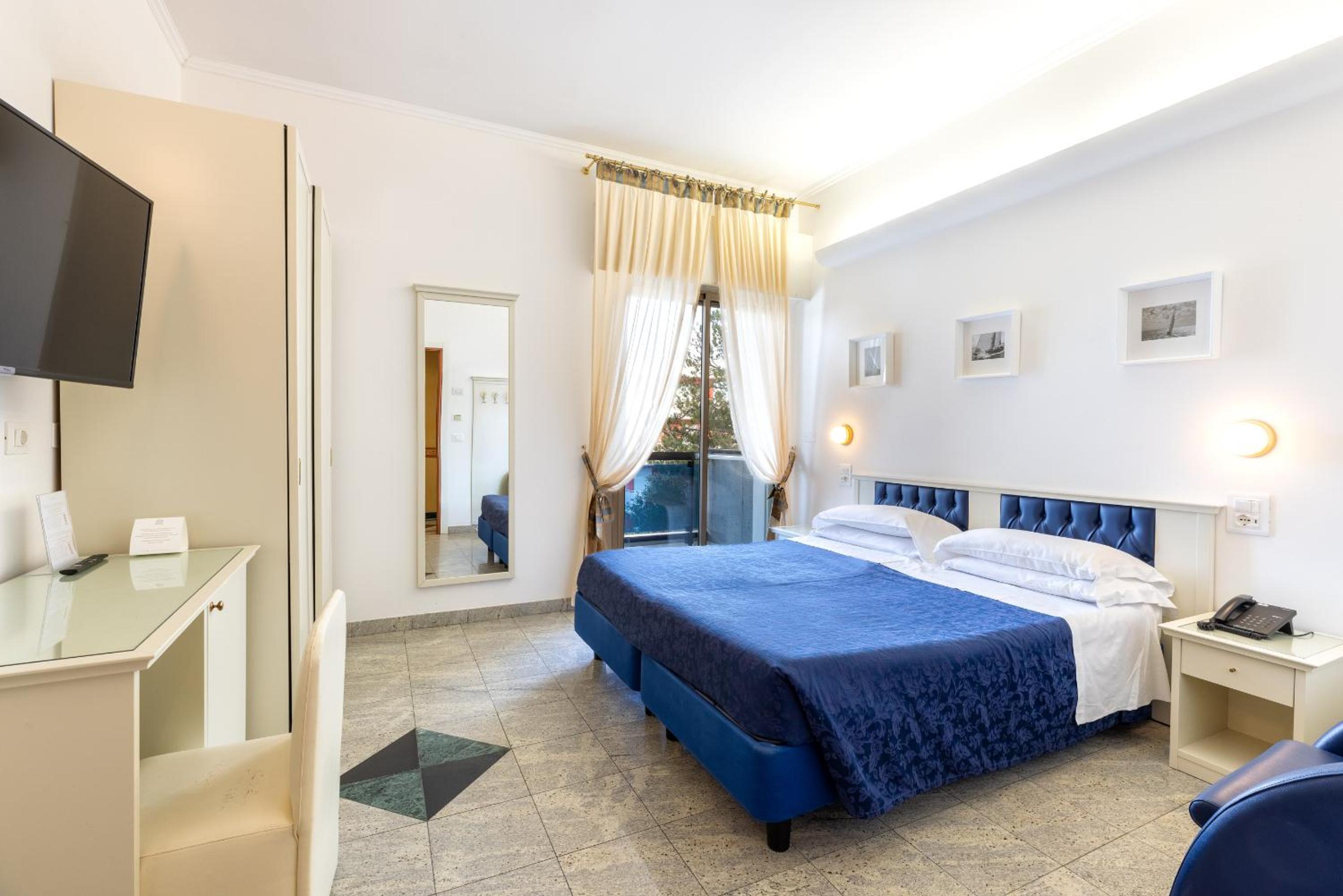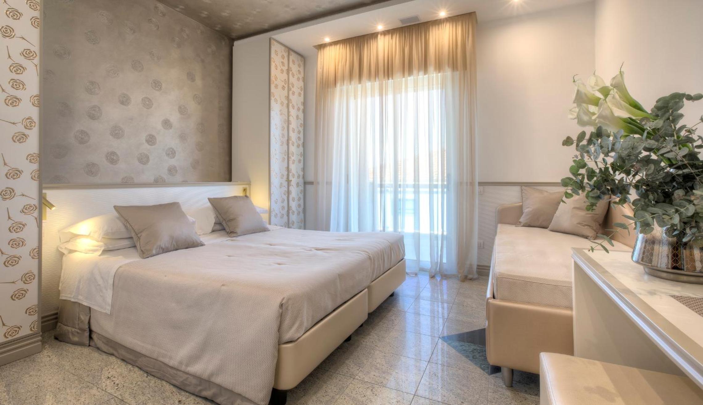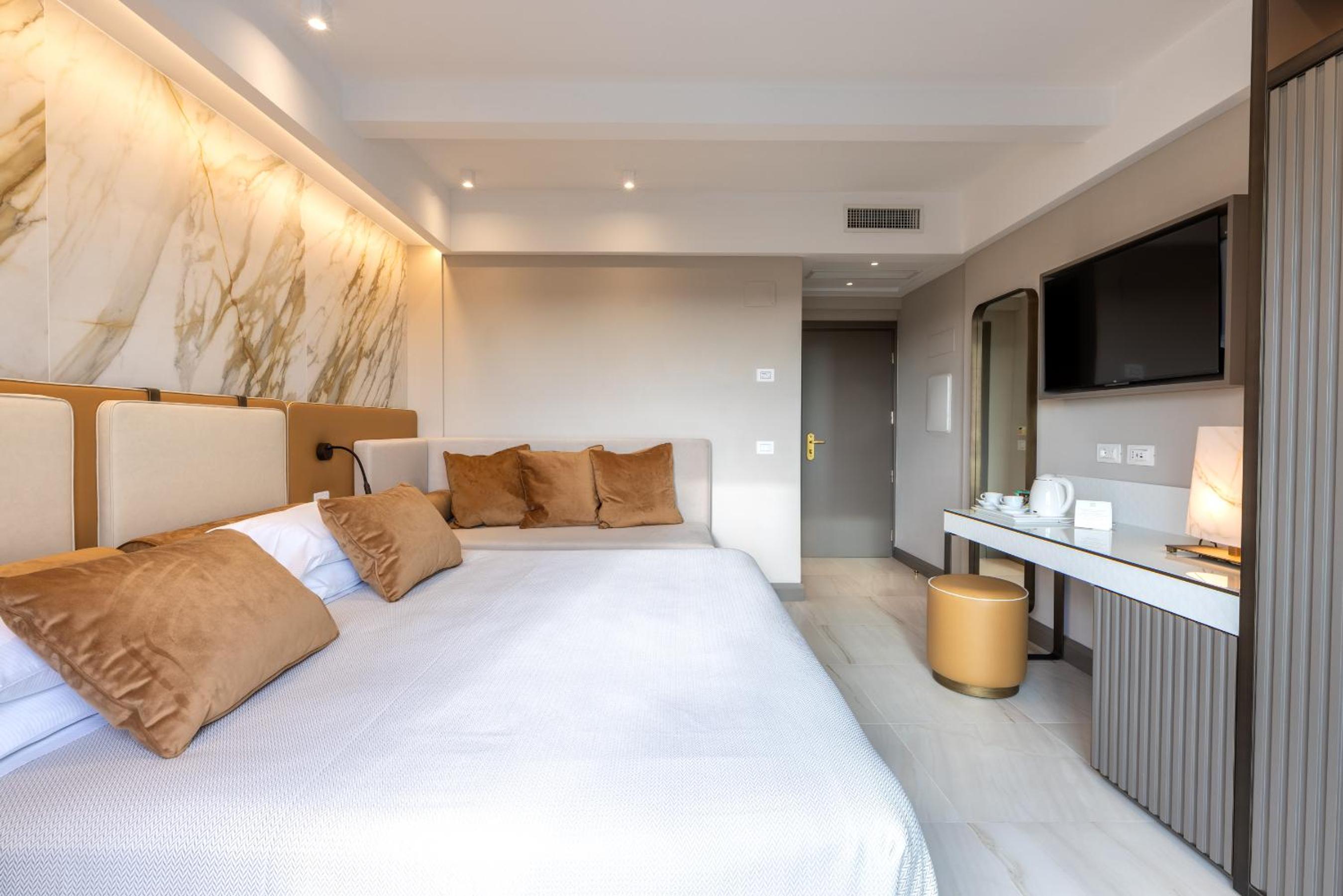 Indulge in the elegant Mediterranean decor of our rooms, each equipped with modern amenities for your comfort, including air conditioning, satellite LCD TV, and a minibar. Some rooms even offer stunning views of the Adriatic Sea.