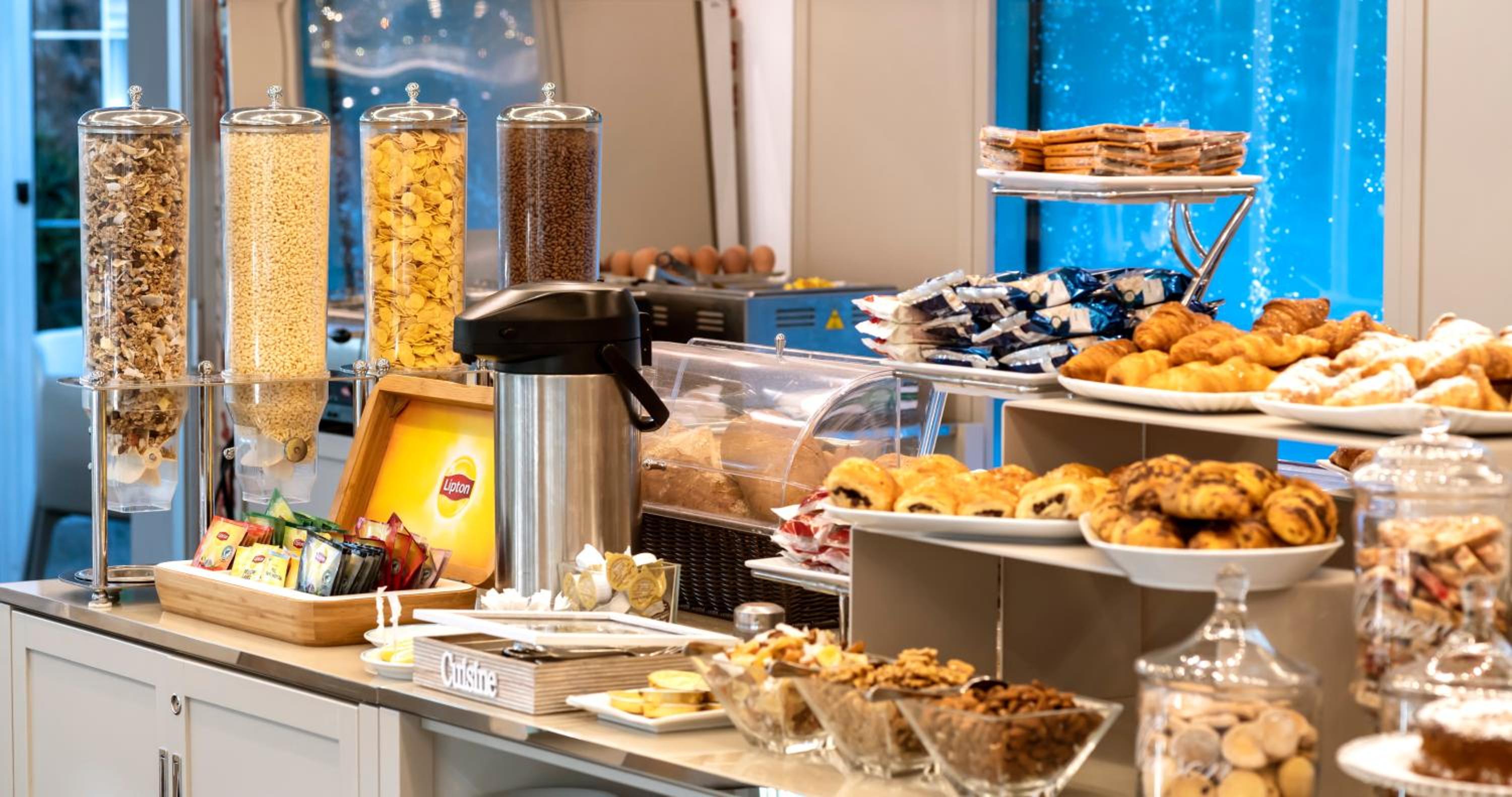 Start your day with a generous buffet breakfast featuring a variety of hot and cold dishes in our sunny dining room. For lunch and dinner, savor international specialties in our restaurant, or opt for pizza and traditional pastries delivered to your room.