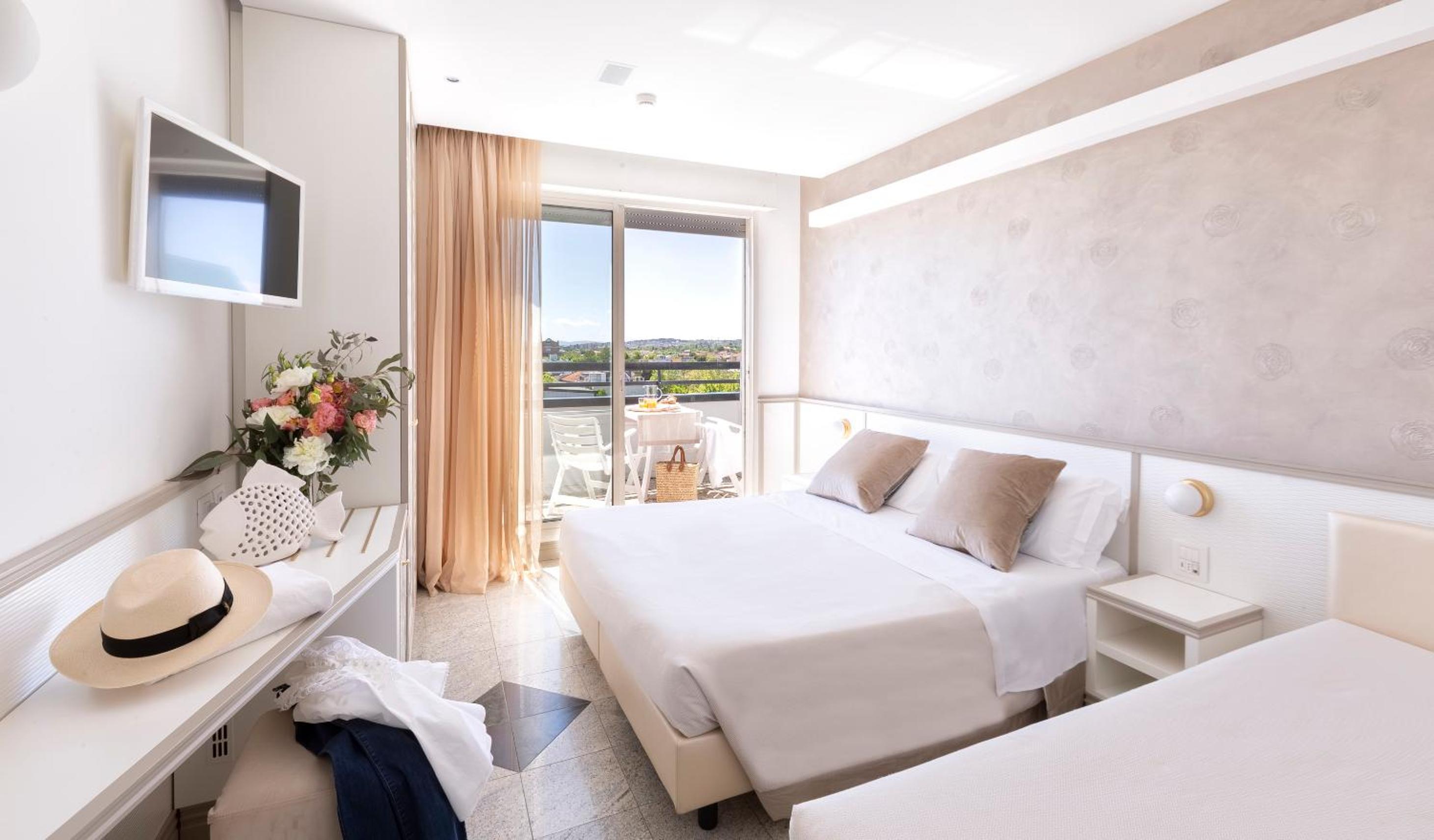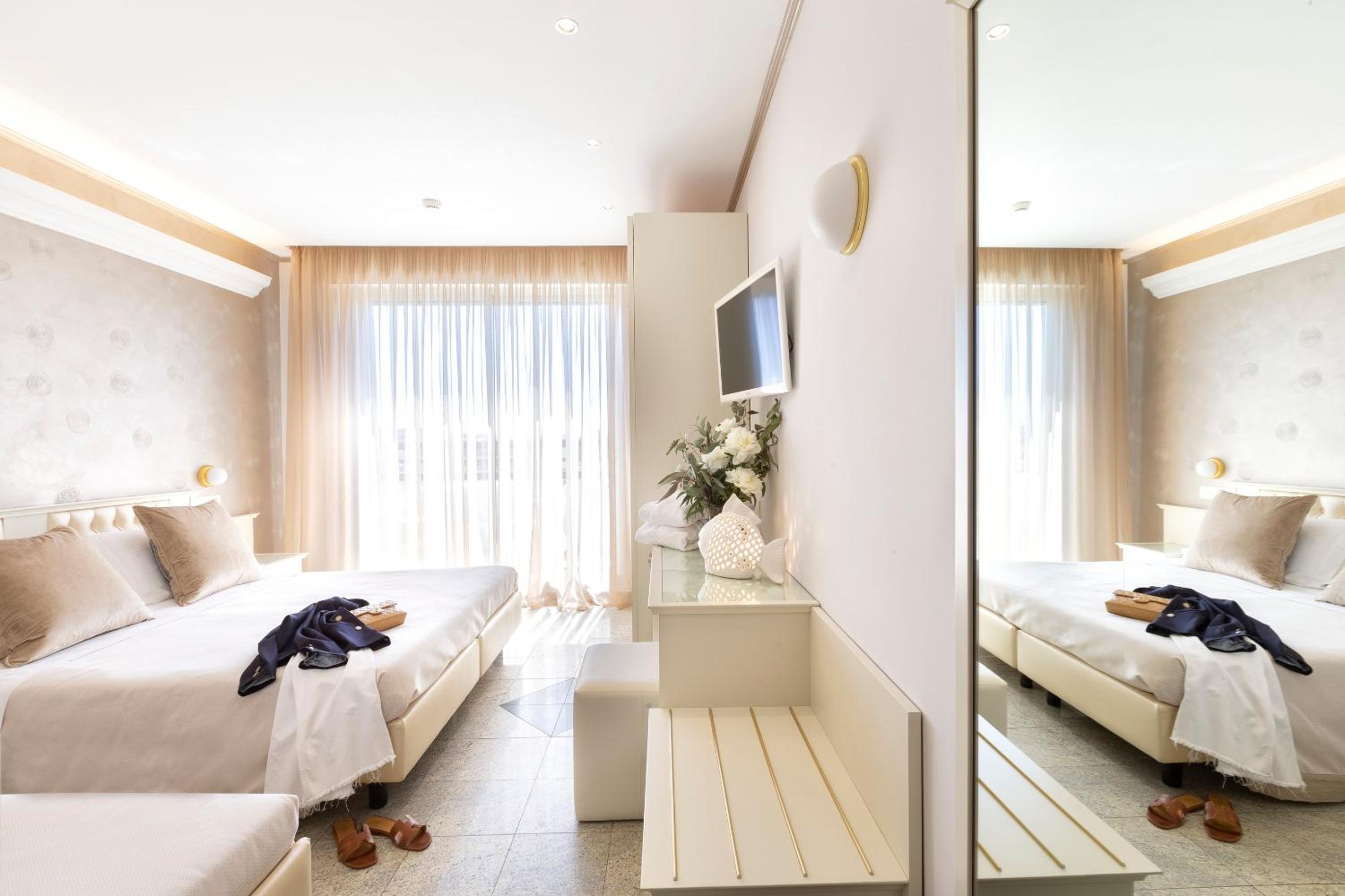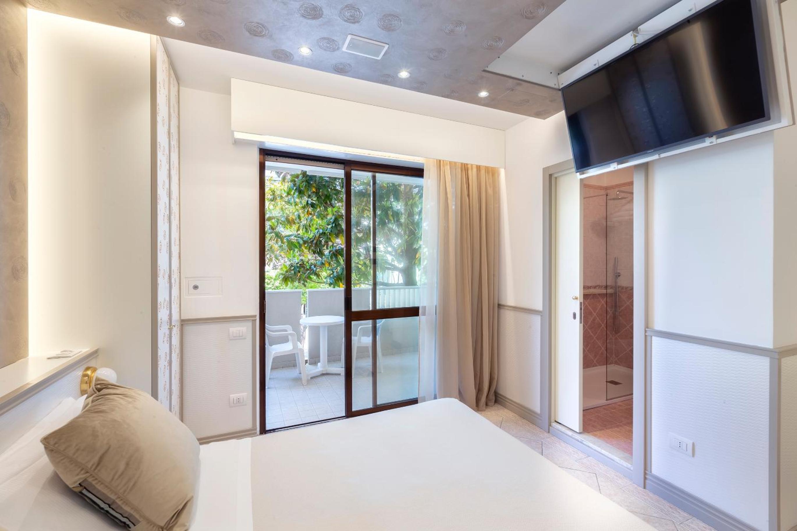 Accogliente hotel a Riccione, siamo stati accolti da staff giovane e preparato. La camera era spaziosa con balcone e una doccia molto grande! La nostra tv veniva giù dal soffitto con un interruttore!!