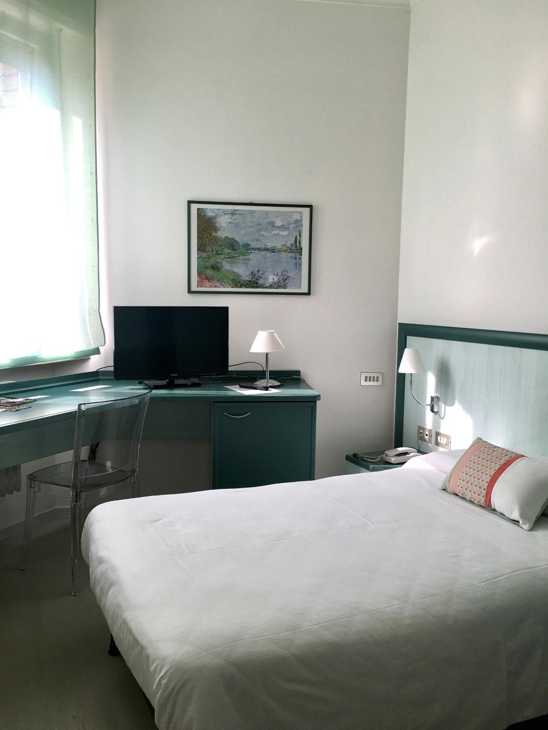 Hotel Europa, nestled in the heart of Alessandria, offers soundproofed and air-conditioned rooms equipped with modern amenities like a 32" SMART TV with free SKY channels and a minibar.