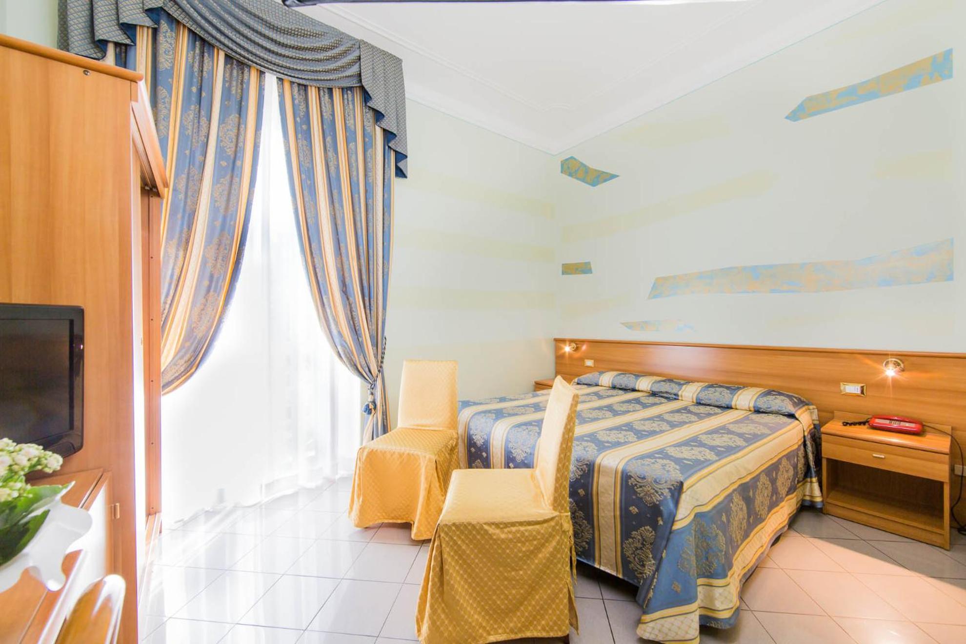 The Hotel Londra offers classically furnished rooms that are spacious, air-conditioned, and equipped with modern conveniences such as satellite TV, a minibar, and a private bathroom with complimentary toiletries.