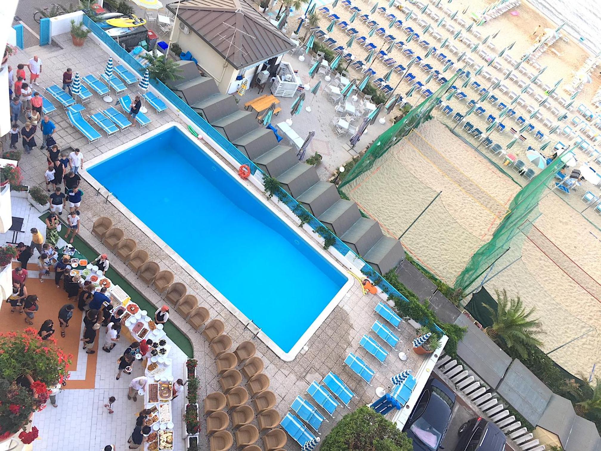 La posizione ottima. Hotel centrale e che si affaccia sul mare. Struttura con personale accogliente, molto pulita ed ordinata. La colazione molto ricca ed abbondante!