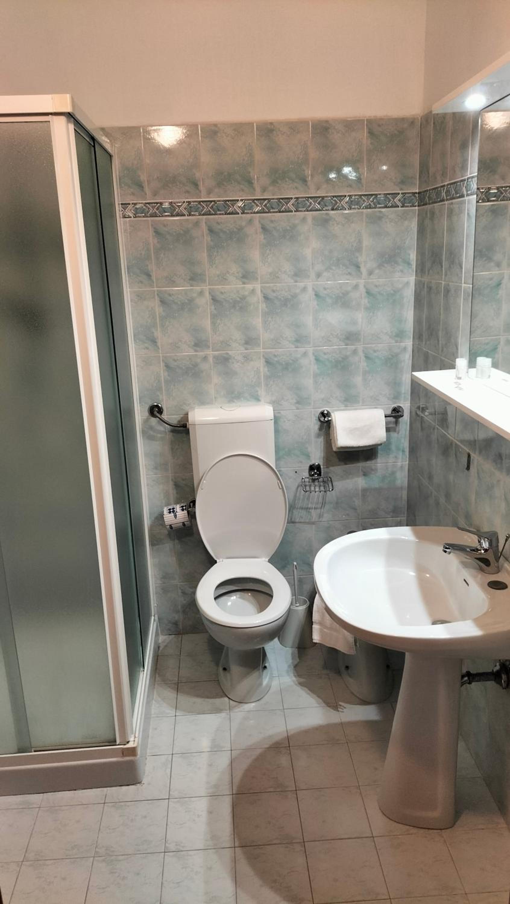 Il bagno era molto vecchio con addirittura la tenda di plastica sulla vasca