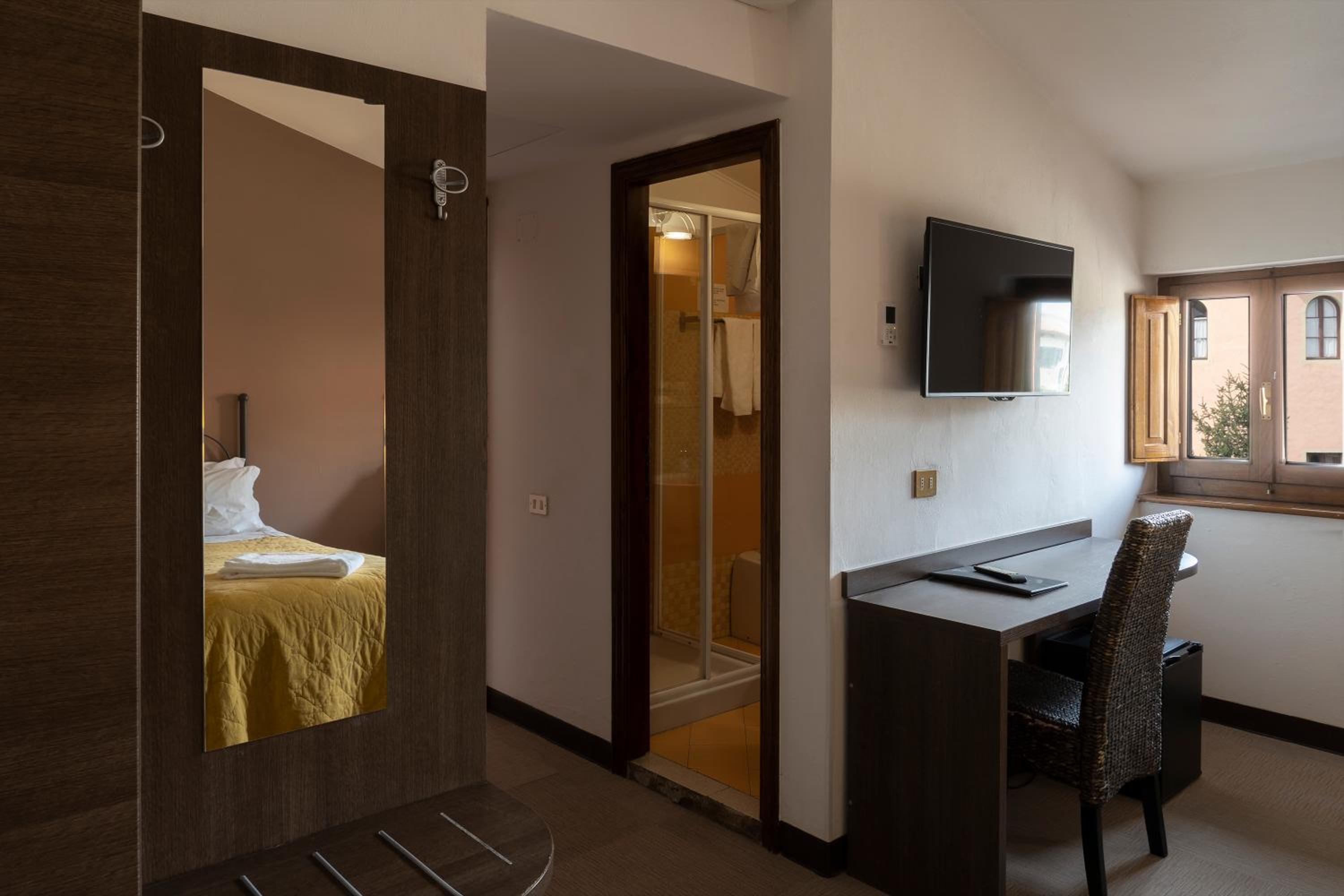 La posizione è ottima perché è situato proprio nella piazza principale, l’hotel è carinissimo e molto accogliente, lo staff suoer gentile e anche la colazione è ottima e molto variegata.