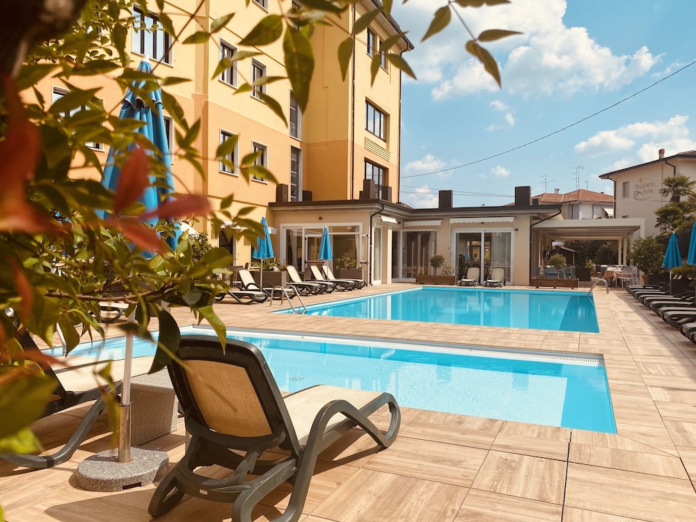 Yövyimme viikon ystäväpariskunnan kanssa. Lensimme Veronaan, taksimatka Peschiera del Gardaan maksoi 55 euroa. Hotelli oli napakymppi. Mahtava aamiainen, mukava allas-alue ja baari josta sai ostettua virvokkeita. Meillä oli superior-huoneet 3. kerroksessa, huoneissa ei ole parveketta. Ainoa miinus oli pienet huoneet, mutta ei niissä kyllä ehditty ollakaan. Kävelymatka keskustaan loivaa alamäkeä noin 800 metriä. Tätä hotellia suosittelen mielelläni!