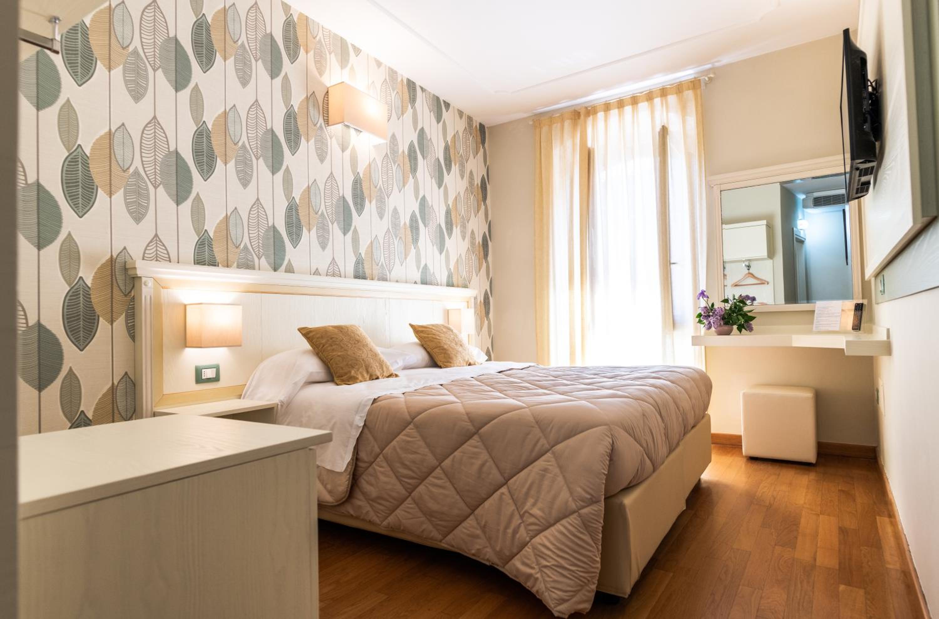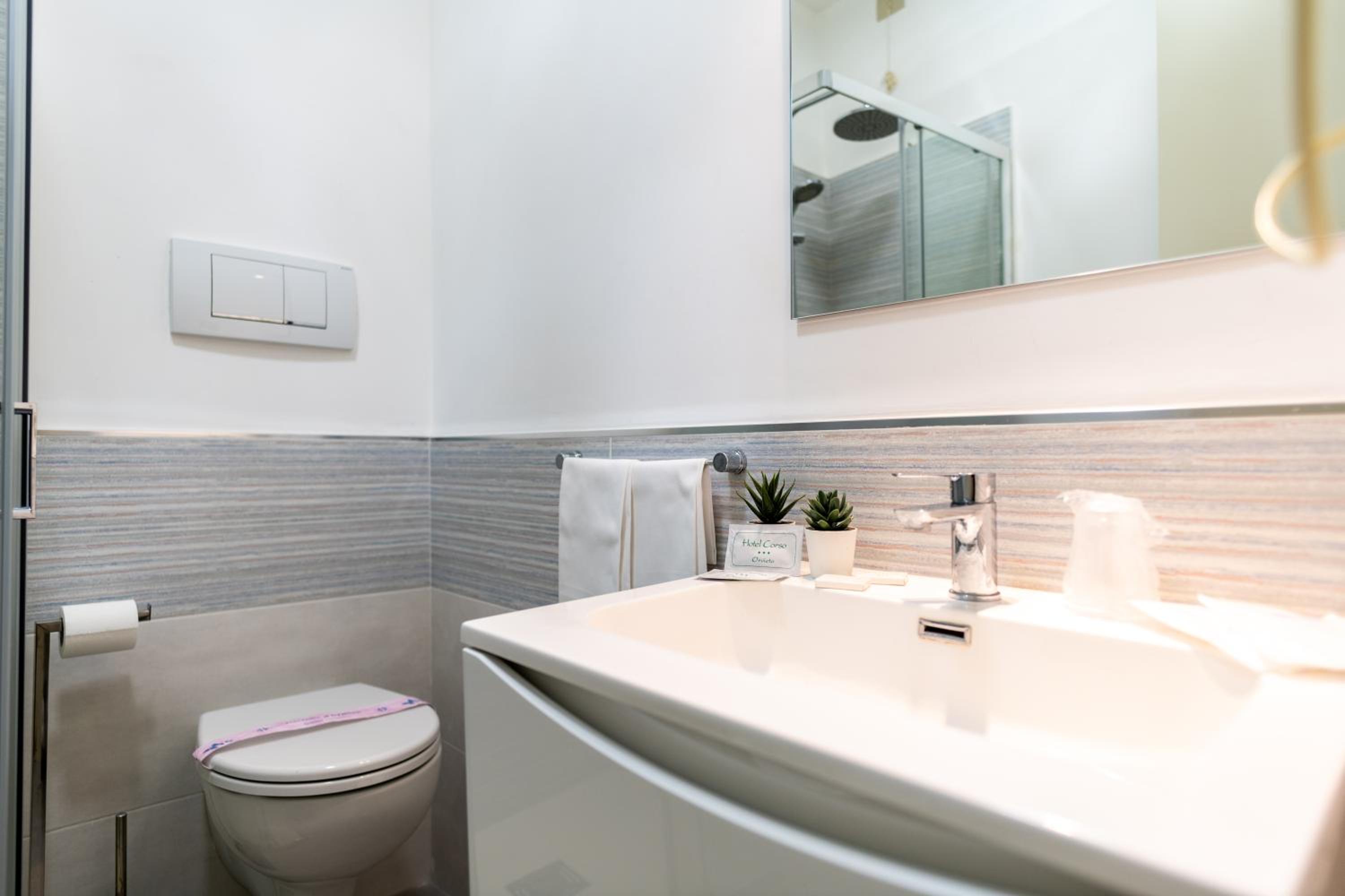 Original Character: Step into the past with Hotel Corso's beautifully renovated building featuring wooden beams and elegant décor in each bright room. Some rooms even offer private balconies for a touch of outdoor serenity.