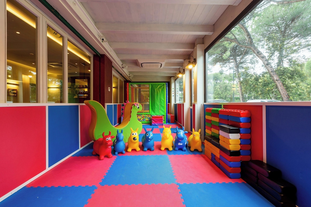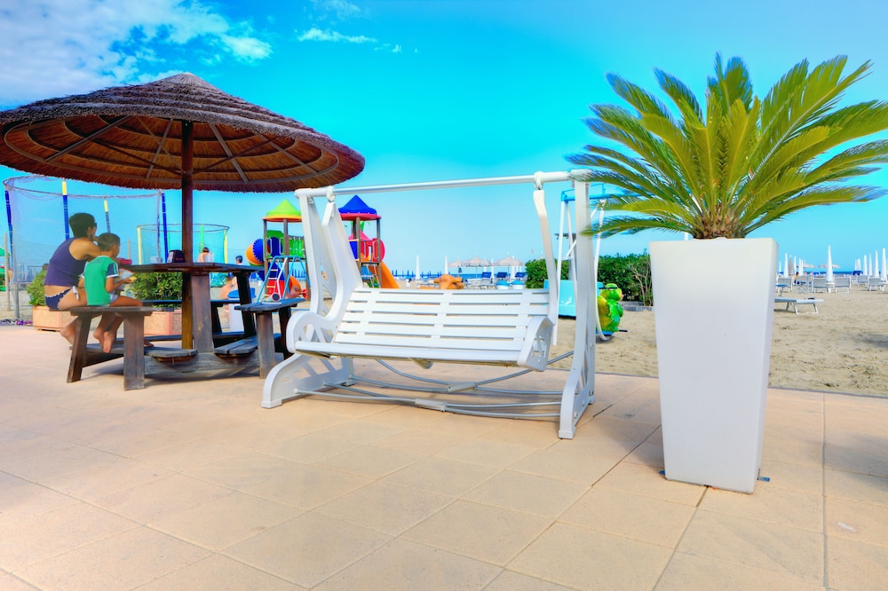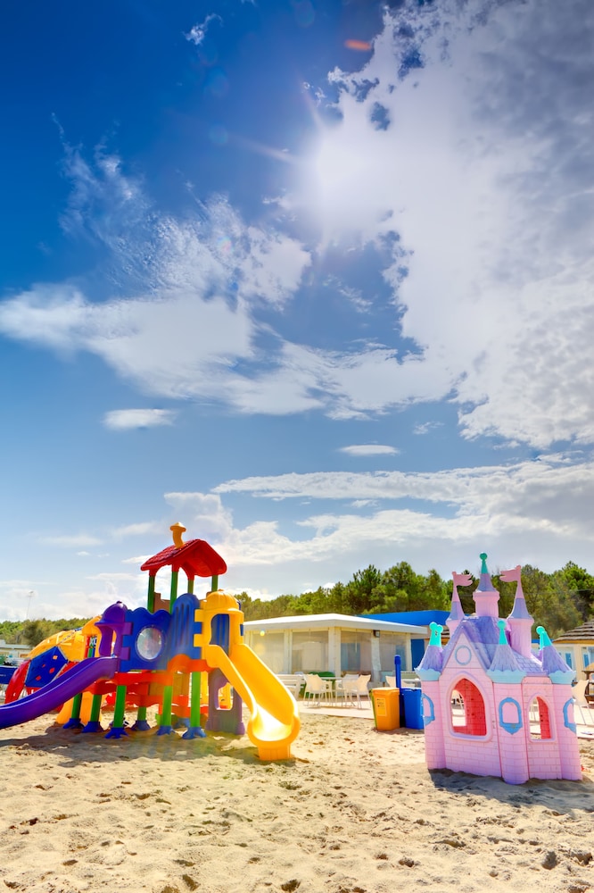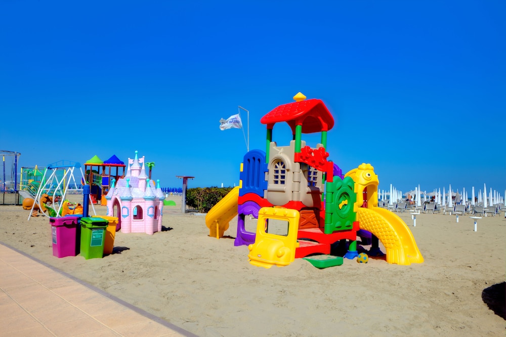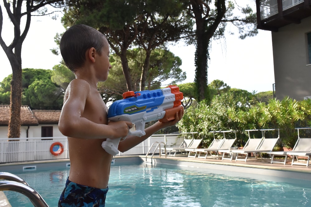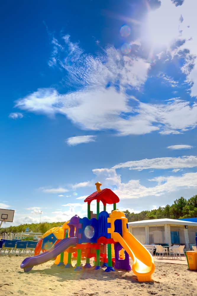 Great location, opposite a pretty woodland path leading 2mins to the beach. Loads of facilities for children. Breakfast included free which was fab. Restaurant was closed when we went as mid-September. Check in is late as they close the hotel 1:30pm until 4pm, but staff were really helpful and friendly and let us leave our bags as we luckily arrived before they closed up. Rooms were fine, no issues. Sun lounger pair with parasol €15, from the hotel associated beach cafe. Loads of cafe options of the beach.