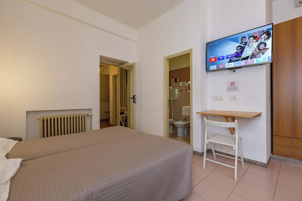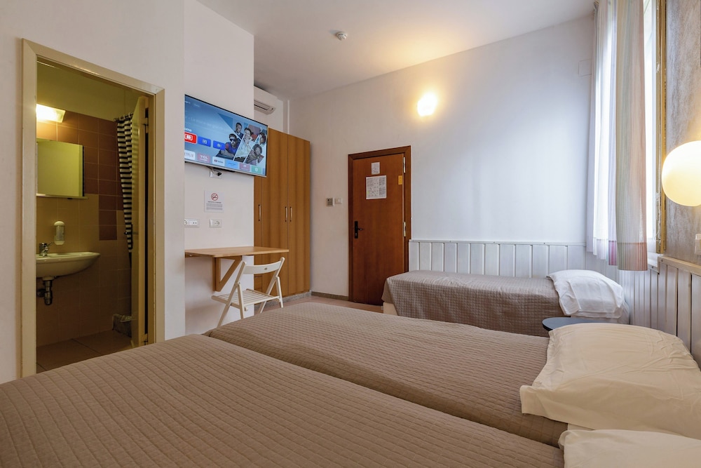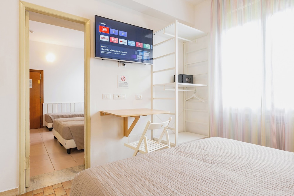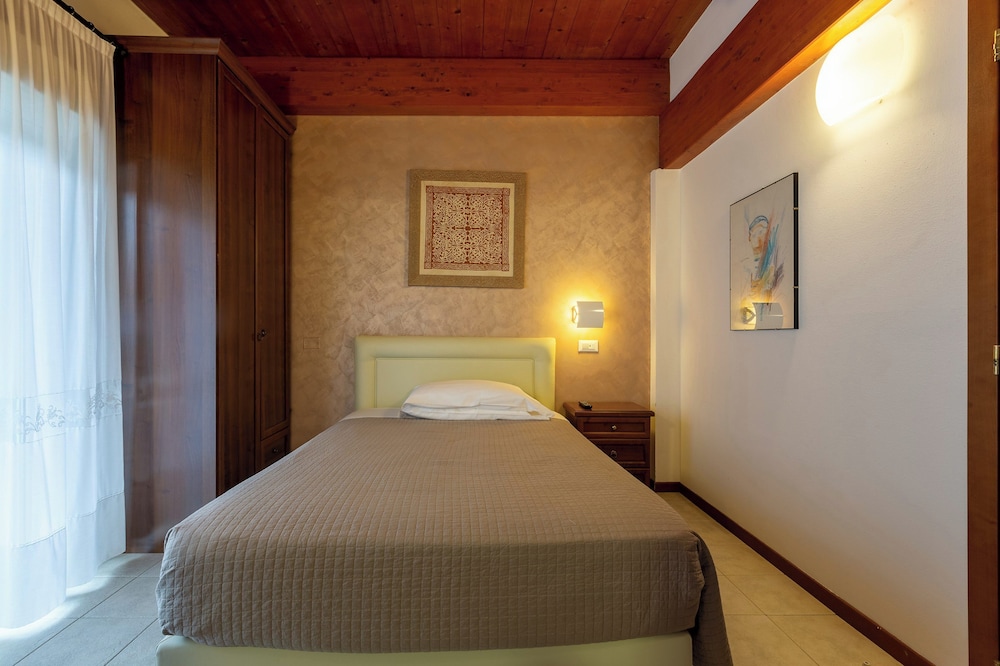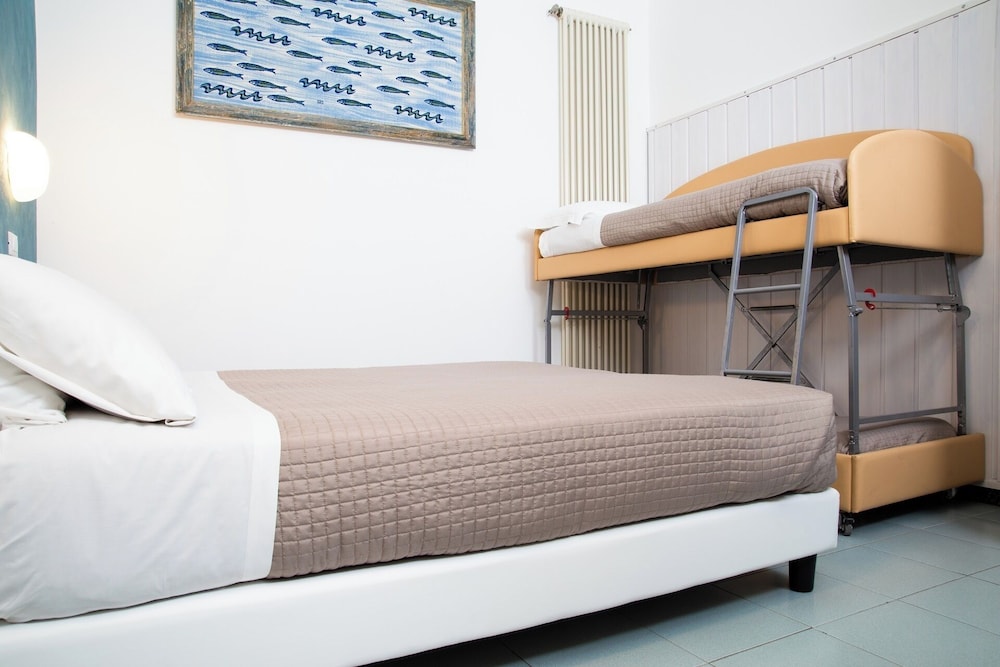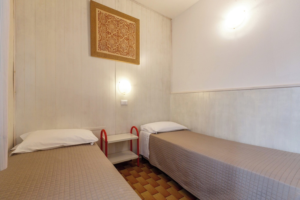 “Quaint” hotel. Old but very well maintained. We were a family of 6 with 2 rooms. King bed and bunk bed which were undersized and uncomfortable. Walkable to beach with many restaurant choices. Lobby had a pool table and outside had some amusement for younger children. Nice pool area. Great breakfast! We stayed here the night before our cruise from the Ravenna port.