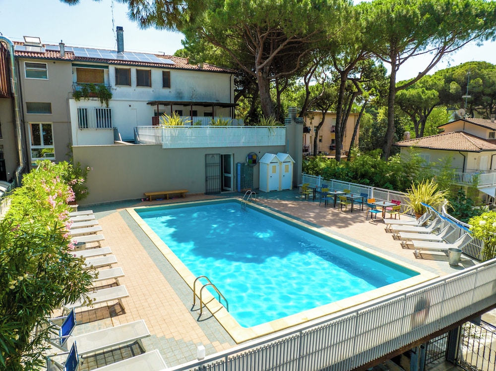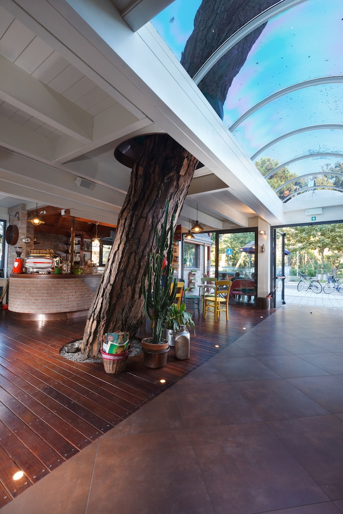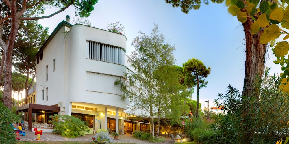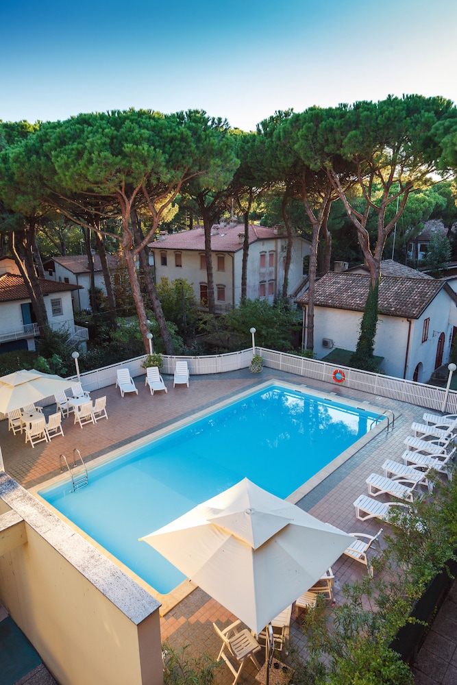Buon hotel di medio livello, proprio di fronte alla pineta che lo separa dalla spiaggia e dal mare. Le camere sono sufficientemente spaziose, ma gli arredi anche se funzionali sono piuttosto datati, anche i bagni necessiterebbero di qualche aggiornamento soprattutto per quanto riguarda la rubinetteria. Da ultimo segnalo l'illuminazione delle camere, piuttosto spartana e secondo noi insufficiente. Comunque nel complesso ci siamo trovati bene per le due notti che abbiamo trascorso, soprattutto con la colazione, molto varia e con prodotti buoni: torte, briosches a volontà, frutta, latte, yoghurt, affettati, formaggi. Ambiente della colazione confortevole ed accogliente.
