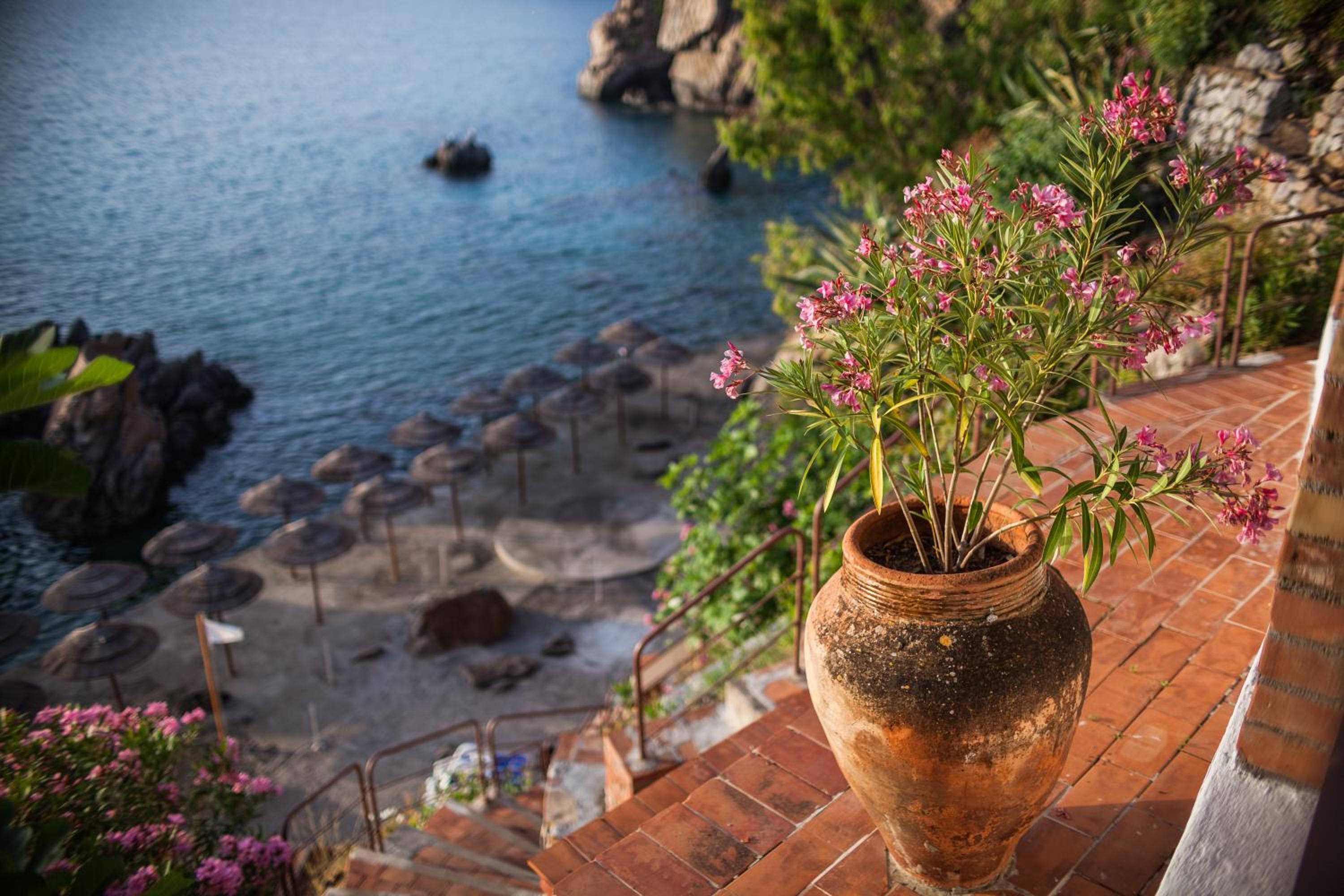 Savor breakfast with a view of the Sicilian coastline and dine on local specialties paired with a selection of 100 Sicilian wines. Explore the on-site shop offering Sicilian products and books. Participate in walking and cycling tours, yoga classes, and more. Relax on the private beach with complimentary parasols and deckchairs.
