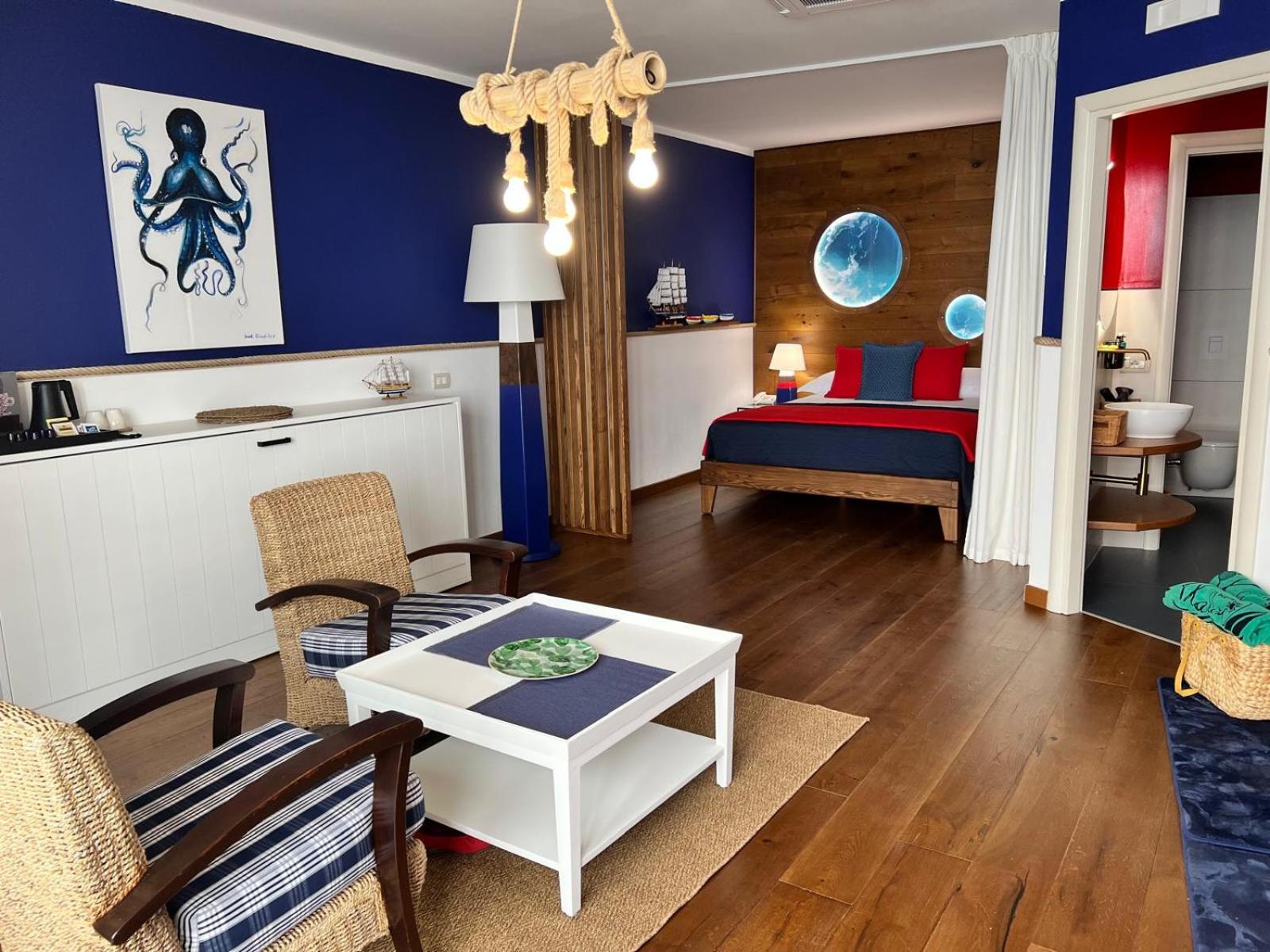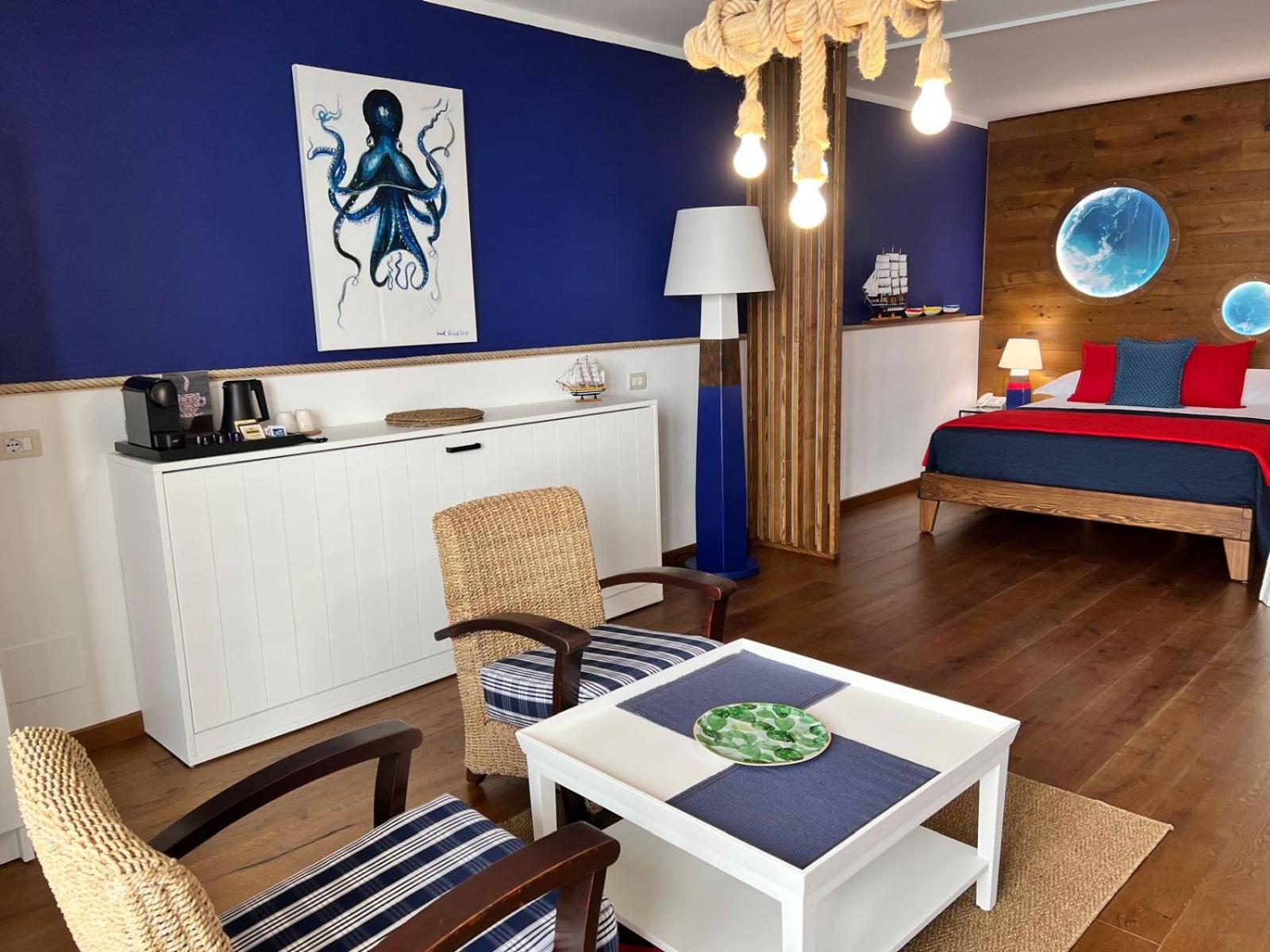 Indulge in the Mediterranean-style rooms with air conditioning, satellite TV, and a minibar. Wake up to stunning views from your balcony overlooking the sea. Enjoy the convenience of free high-speed WiFi during your stay.