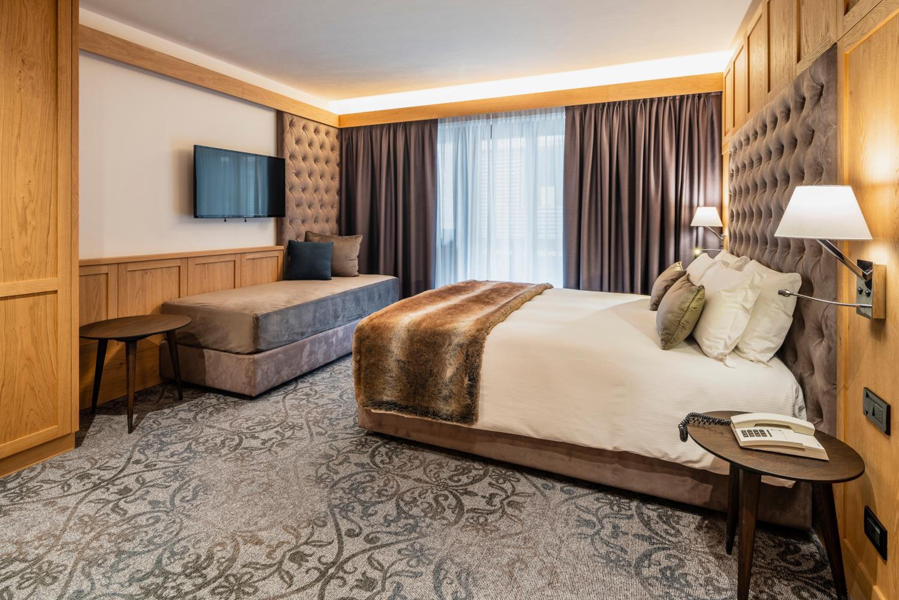 Hotel Lajadira & Spa presents a perfect blend of luxury and convenience, offering free parking, a spa centre, and a complimentary shuttle to Cortina D’Ampezzo and the ski lifts. The rooms and suites, adorned with wood furnishings, boast balconies with breathtaking views of the Dolomites.