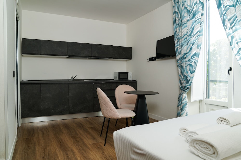 I stayed there 7 days. Easy to travel to and from. Staff was very helpful. 15 min walk from city of Pompei which is less touristy since most people are generally visiting the ruins. A great coffee shop just next door and I liked the restaurant Shaval 2 min walk. You can prepare your meals in the room but there are no plates, glasses or cooking tools of any sort. So think about it when shopping. Street noise and train at times but quieter in the night. In bonus, i could see fireworks from my room every evening. Unsure where they came from and why they took place but fun to see!!!