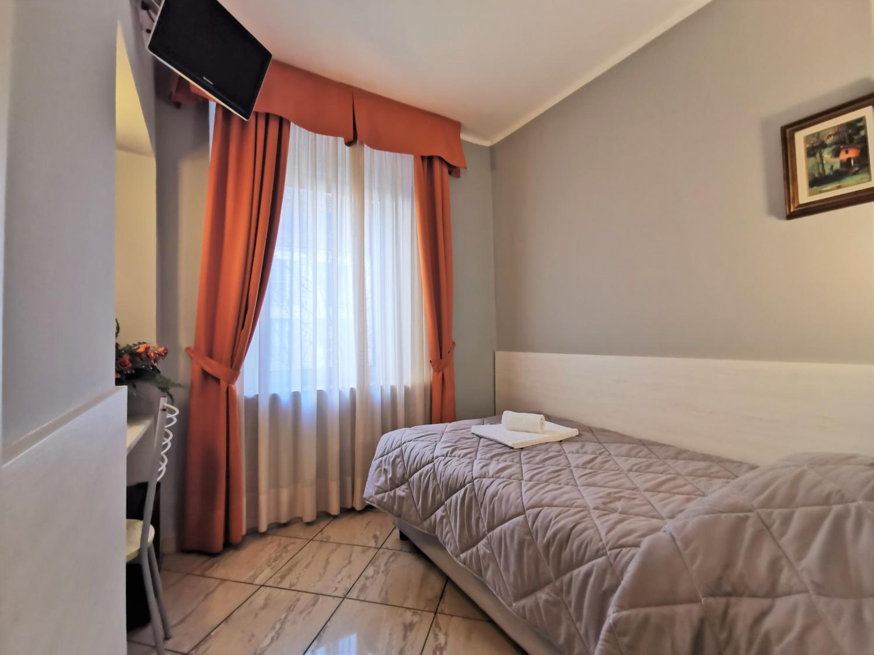 La stanza singola piccola ma molto silenziosa perché si affaccia su un cortile interno. Pulizia. Gentilezza del personale