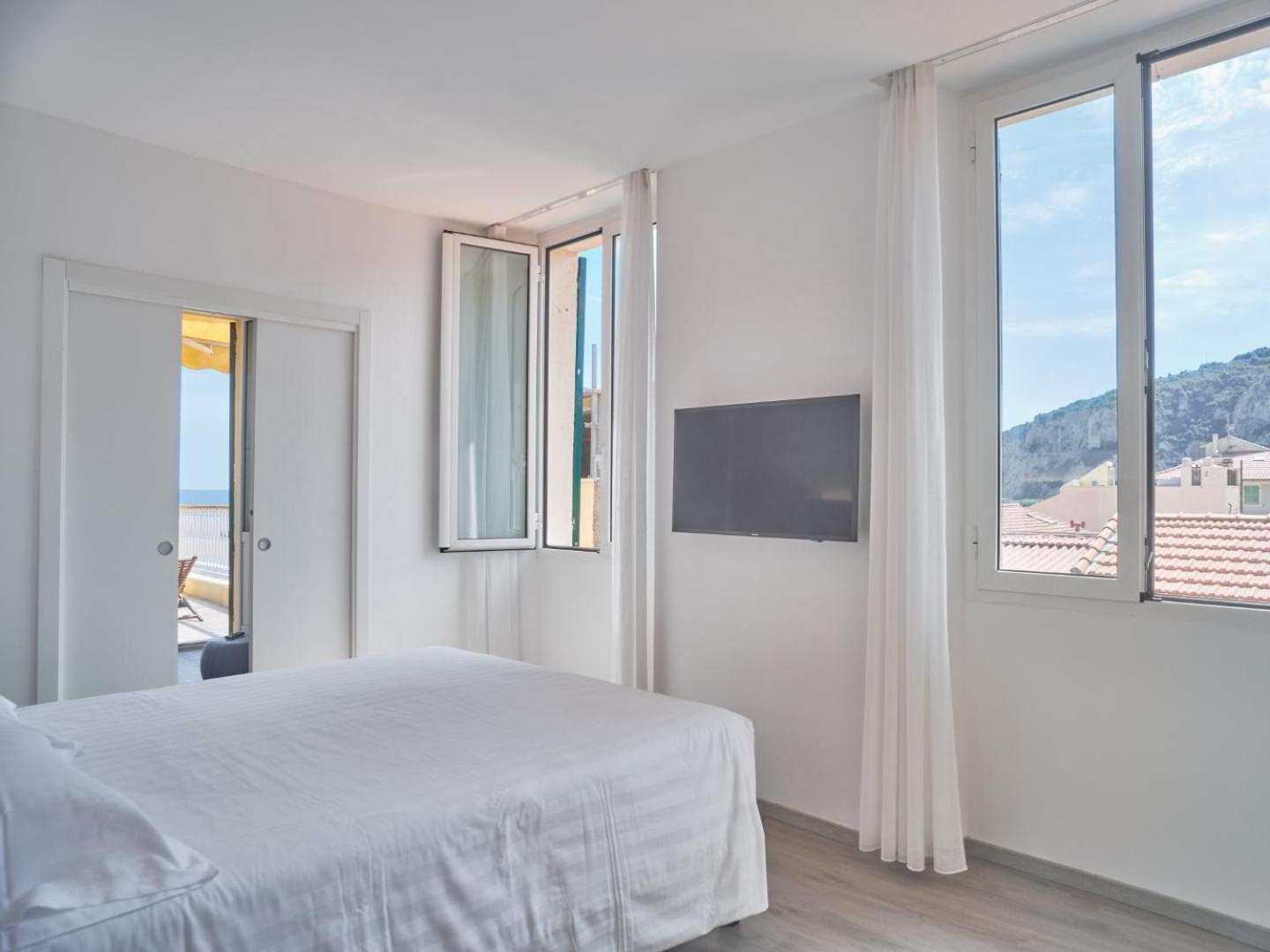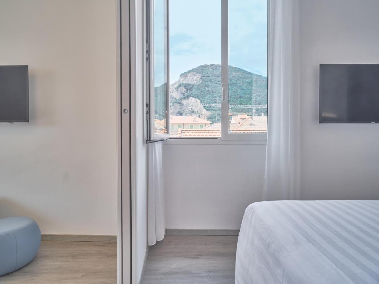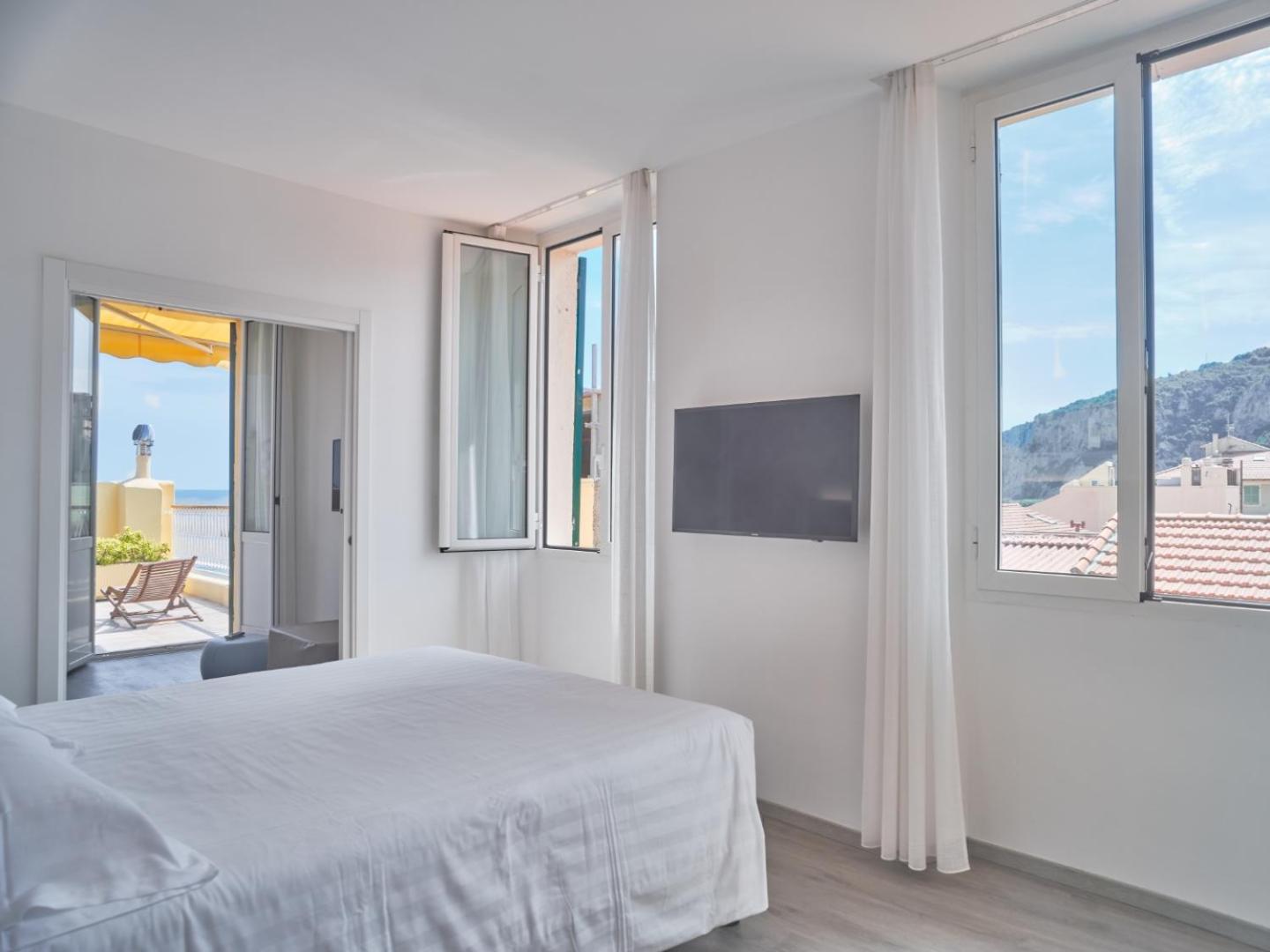 Step into the 17th-century charm of Hotel Medusa, conveniently located on the lively promenade of Finale Ligure. The property seamlessly blends history with modern amenities, offering a storage room and washing facilities for bikes, perfect for cycling enthusiasts looking to explore the area with guided excursions and detailed maps provided.