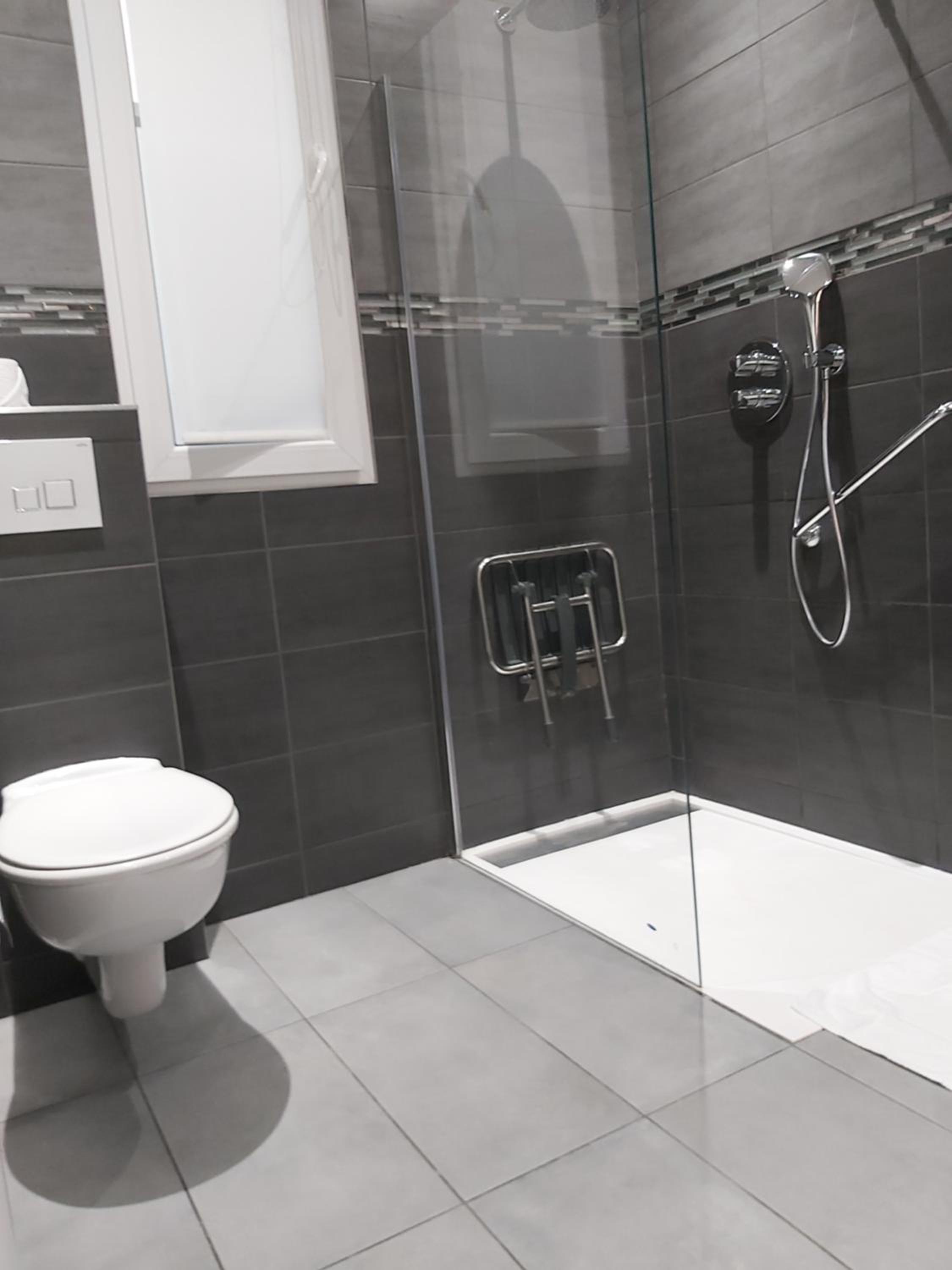The only downside was that water was able to seep under the shower door and into the rest of the bathroom, leaving the floor quite wet. Easily manageable with a towel on the floor however.