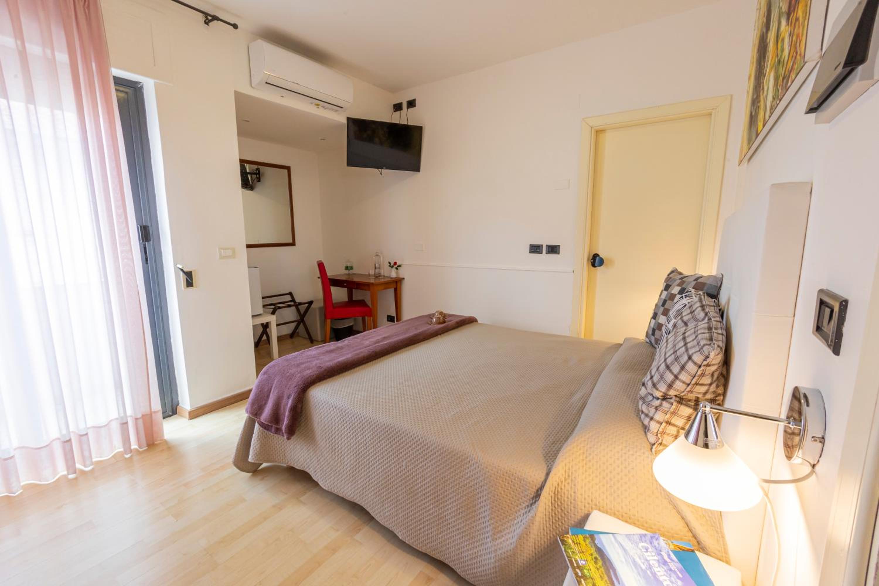 We spent the night in Paestum. The hotel owner was very friendly and very welcoming. Room was very clean, bathroom was clean and tidy, shower was nice.