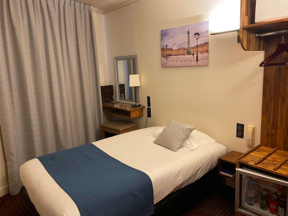 Hotel was a great choice. Not my first time in Paris. Yes. Rooms are classic small. But clean, updated bathrooms well equipped. No fridge. Front desk staff was amazing..so helpful, welcoming and caring! Totally unexpected and very greatful. Location was unbeatable. Close walk to everything. In midst of asian restaurants, walk in any.direction and you will find what you need from upscale restaurants towards Champ Elysees to more welcoming and budget friendly brasseries along the Petit Champs. Very very nice experience, definitely recommend..