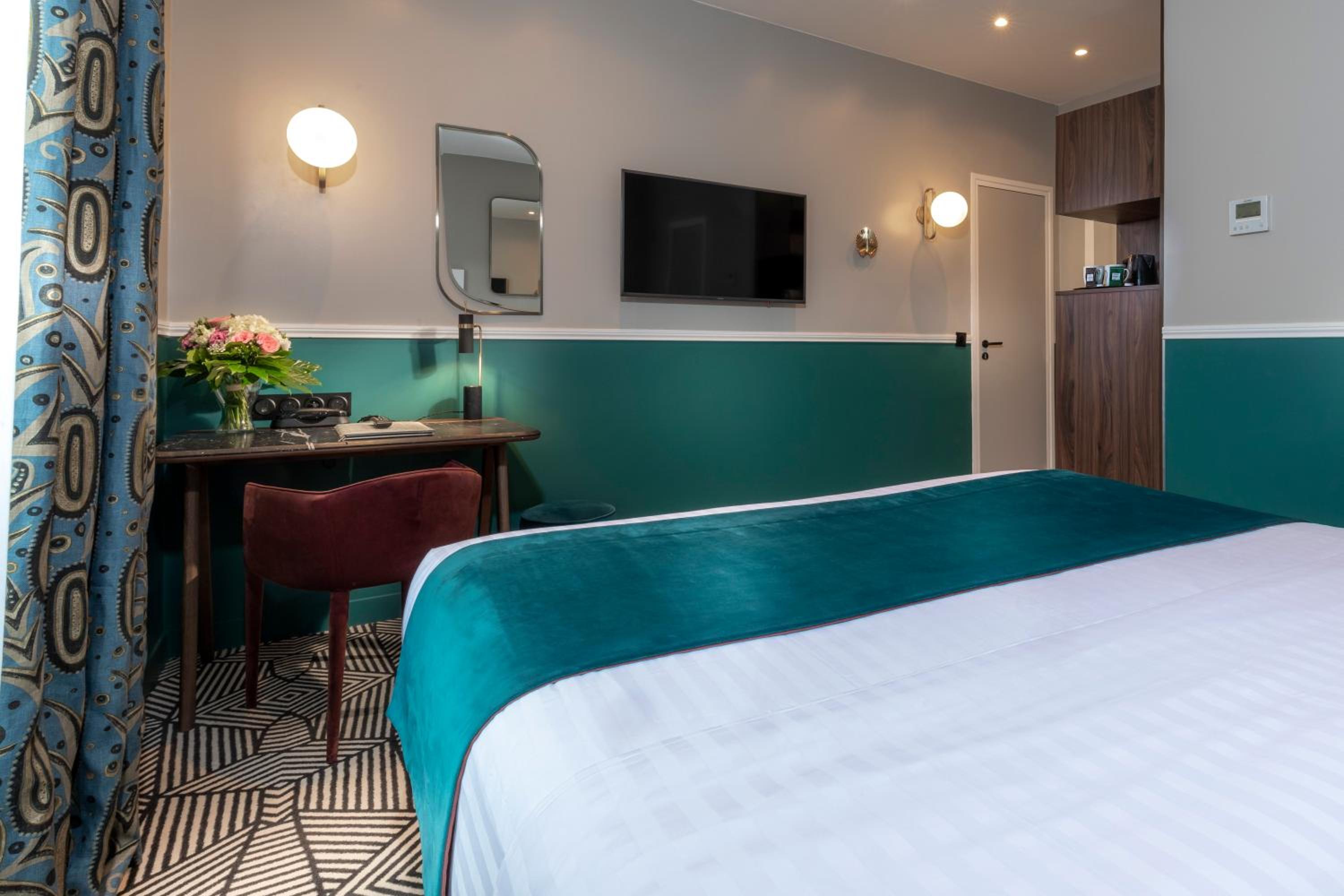 Experience a comfortable stay in our soundproofed rooms with modern decor, air conditioning, satellite TV, and free Wi-Fi. Some rooms offer stunning views of Luxembourg Gardens, adding a touch of tranquility to your visit.