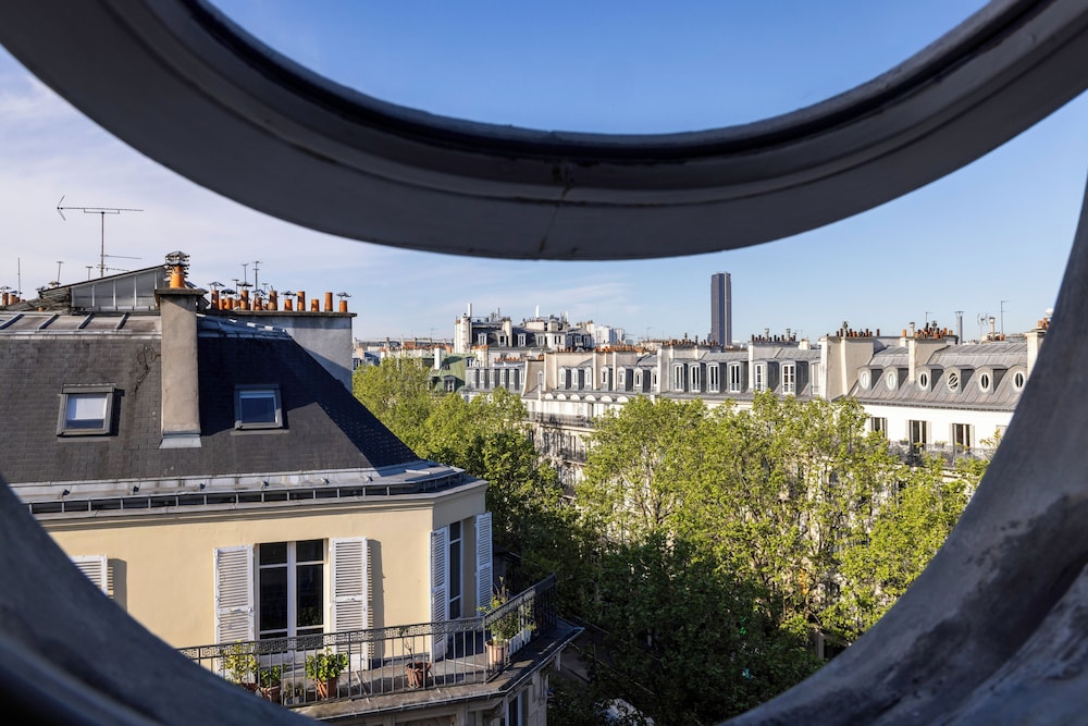 Great location, but very pricey for what you get. Nice but small room, the same bath products in my previous much cheaper hotel. BUT my sixth floor room had porthole windows you could actually open – and see the Eiffel Tower! Worth it with a discount over listed rates.