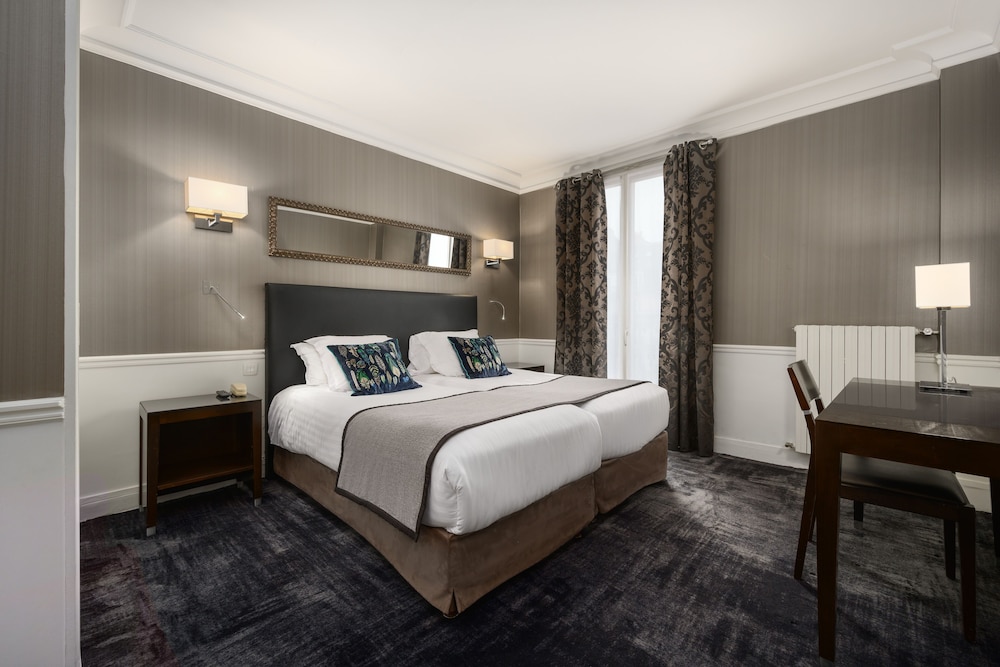 Decent hotel. A short walk from the Gare Montparnasse. Rooms are decent size for Paris. Breakfast is OK (not spectacular). Despite being on a big street it's quiet and comfortable inside. There are a couple of good restaurants close by.