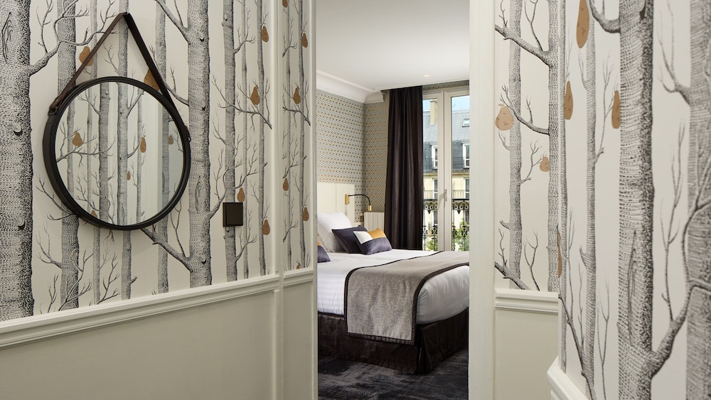Clean, friendly, comfortable hotel with spacious "junior suite" (including two bathroom sinks and a separate shower and bathtub/shower). Pretty and stylish decor with plenty of natural light and French windows that open--with heavy, velvet blackout drapes. Very convenient location to metro and RER station, numerous restaurants, groceries, Luxembourg Garden and Montparnasse. Free espresso all day in the breakfast room and mini-fridge in room. Would be nice for the superior rooms and suites to have their own Nespresso machine.