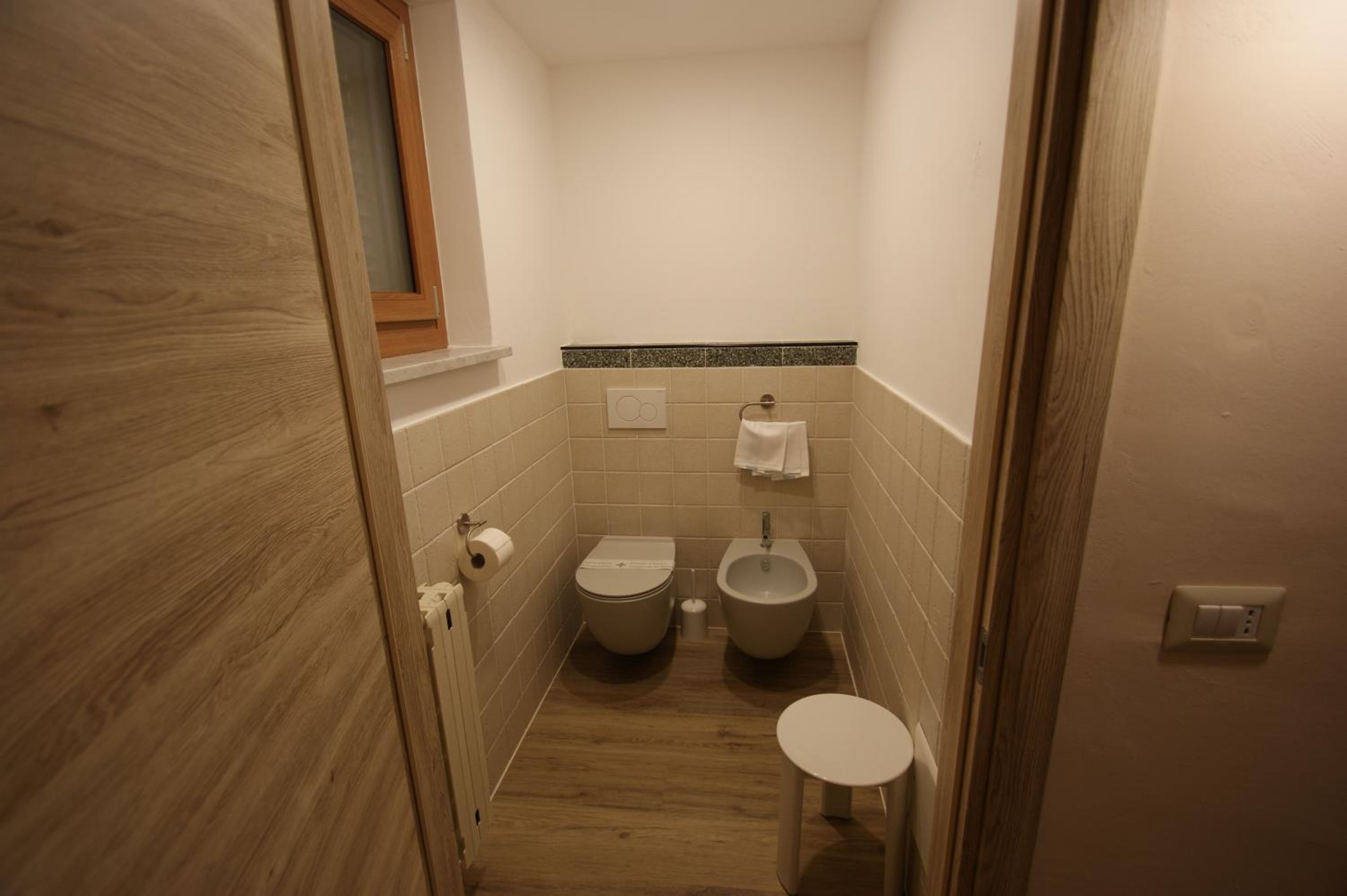 Great hotel about 7 minutes from the slopes. Breakfast included and family rooms (queen bed with connected room with mini fridge and desk and twin bed. Convenient separate toilet and shower for families. Would definitely return. Nice sound proof windows and wonderful very hot shower. Impeccable. Run by a lovely family. Excellent breakfast included in the mornings. Includes home made pastries and fresh cold cuts.