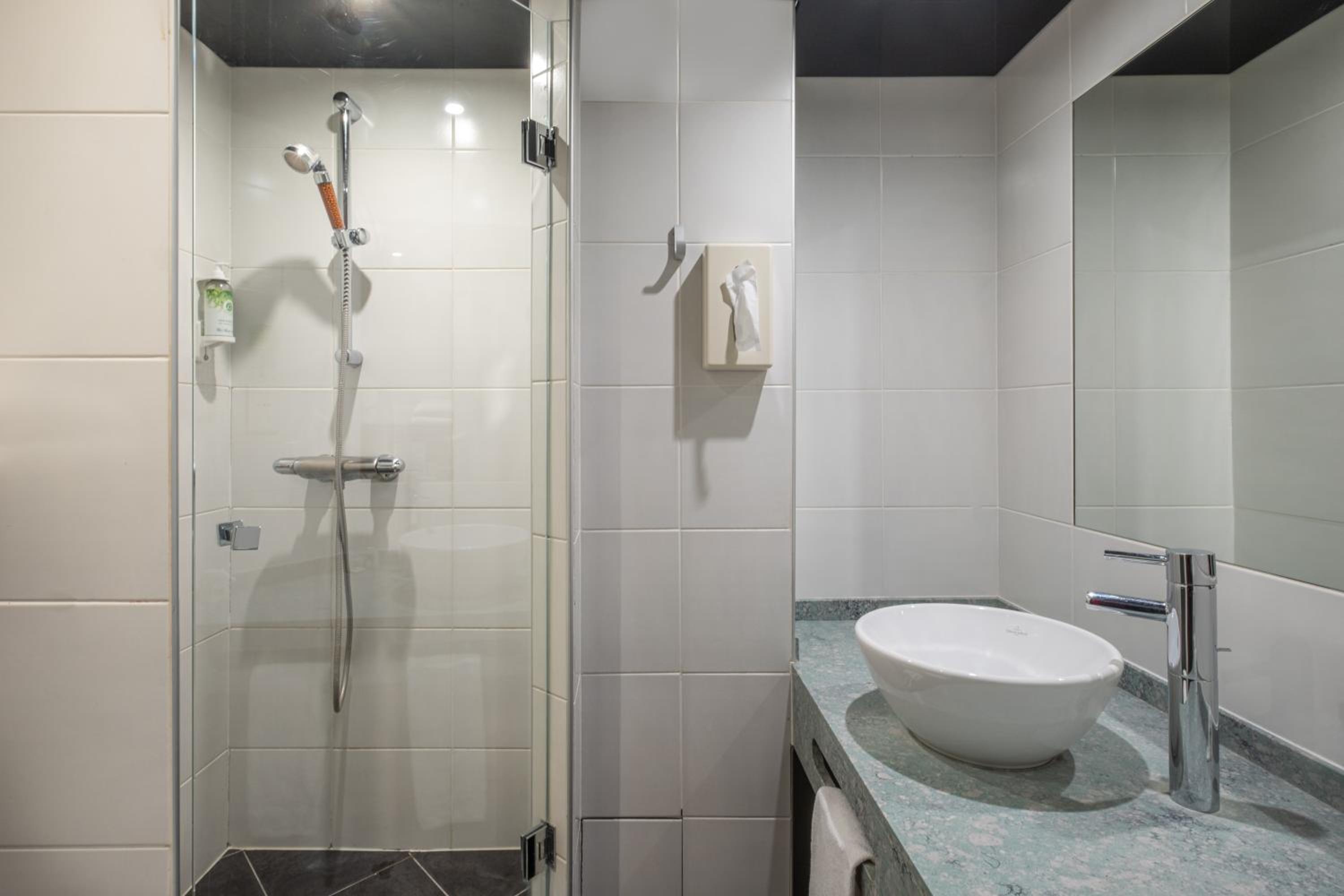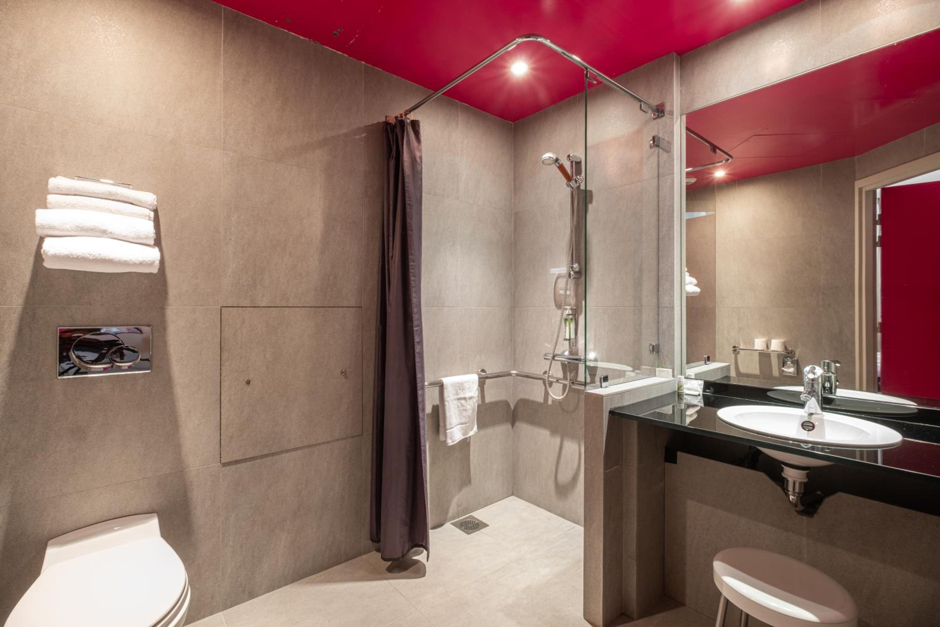 El hotel es pequeño y está algo anticuado. Además en nuestro caso la habitación tenía la ducha rota, con claras marcas de haber tenido mampara que no estaba, esto hacía que el baño se inundase al ducharnos. Lo comunicamos en recepción y no nos dieron ninguna solución, simplemente decían que era una ducha abierta...