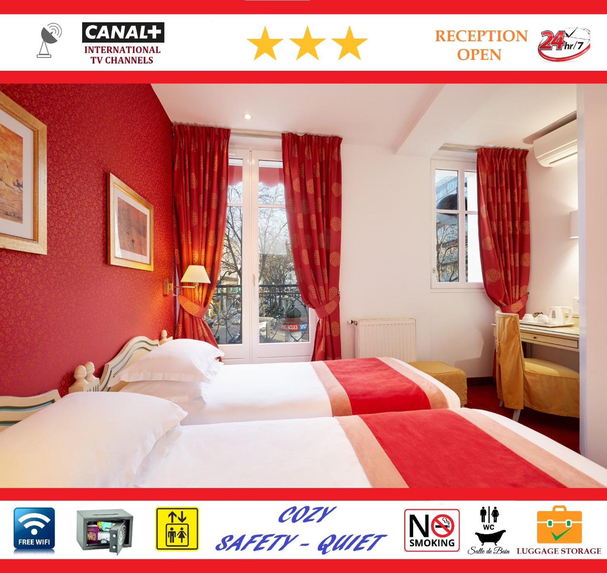 Chambre sobre mais disposant de tout le confort et très calme. Literie très correcte. Propreté impeccable. Très bon emplacement, à côté de la Gare Saint-Lazare. Personnel très complaisant et souriant. Rien à redire. Prix très abordable pour un hôtel parisien.