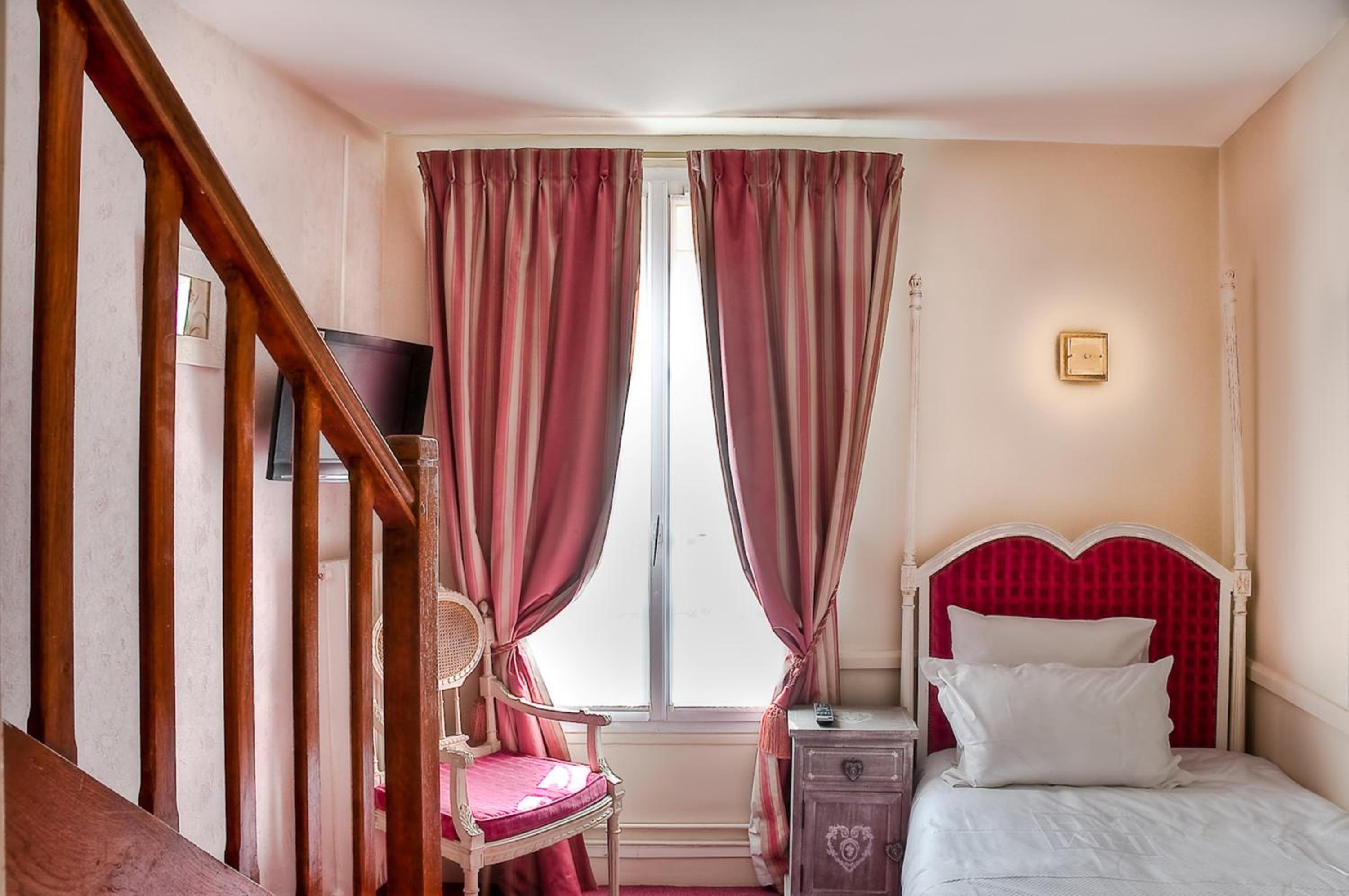 A iluminação, a falta de tomadas na cabeceira da cama, a falta de uma chaleira, o cofre muito antigo, o secador muito ruim, a falta de armário, pois o quarto é minúsculo. No primeiro quarto em que fiquei 306, era muito escuro, todo vermelho, não tinha uma tomada na cabeceira, no segundo que fiquei 304, já melhorou pois era claro durante o dia, porém, à noite, a iluminação é horrível, o frigobar fica dentro do armário tomando o espaço onde deveria ter prateleiras, pois o quarto é minúsculo, e aqui vai uma sugestão, colocar o frigobar no armário onde está o cofre, colocar uma prateleira em cima do frigobar, liberando o armário do frigobar e colocar umas prateleiras, ajudaria bastante ao hóspede, as tomadas ficam próximas do chão, muito difícil de usar, o ideal é deixar na altura da cama. E o principal, uma chaleira é fundamental em qualquer hotel, faz toda a diferença. Voltando a Paris, se perceber que colocaram chaleira, voltaremos a nos hospedarmos pois o atendimento dos funcionários nos cativou.