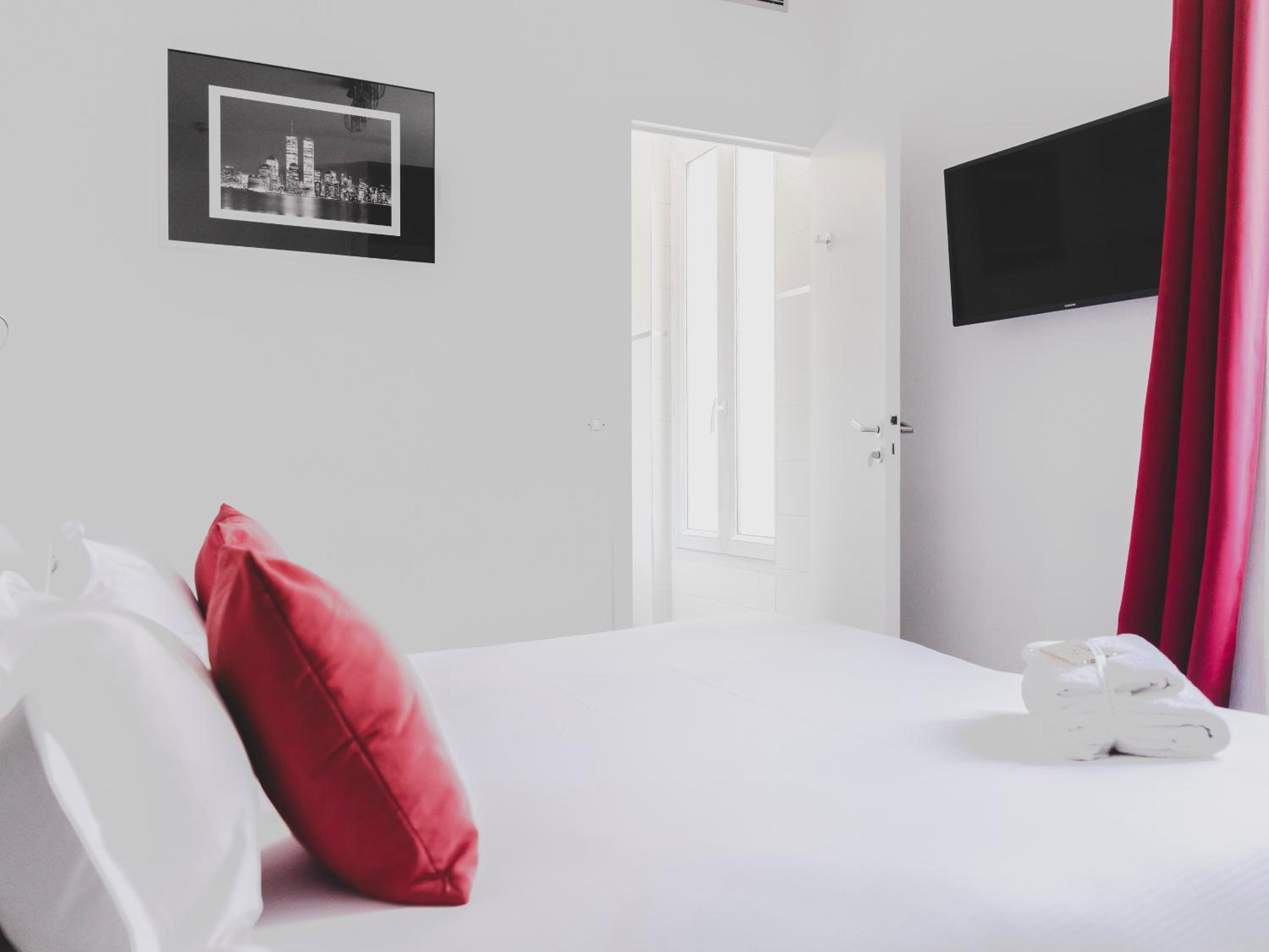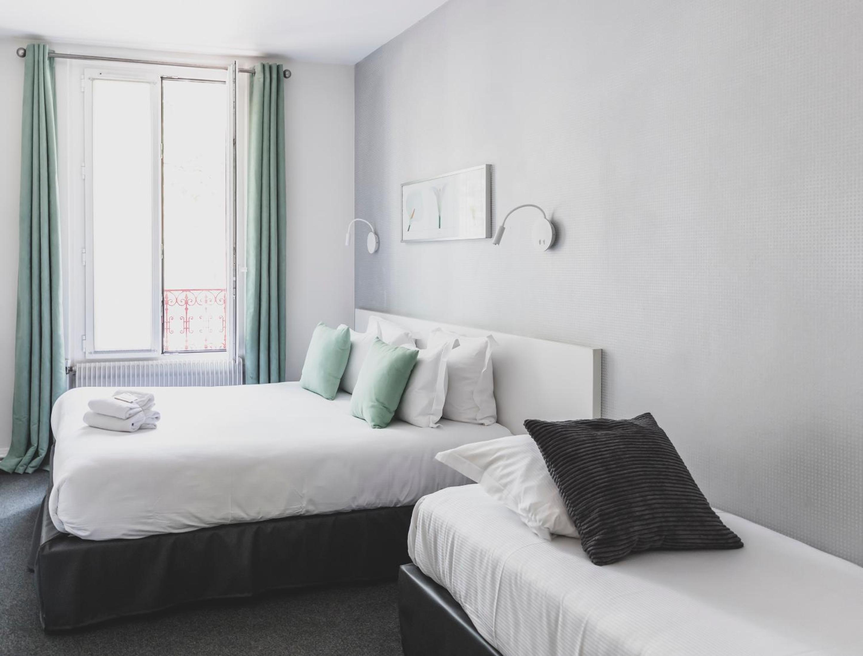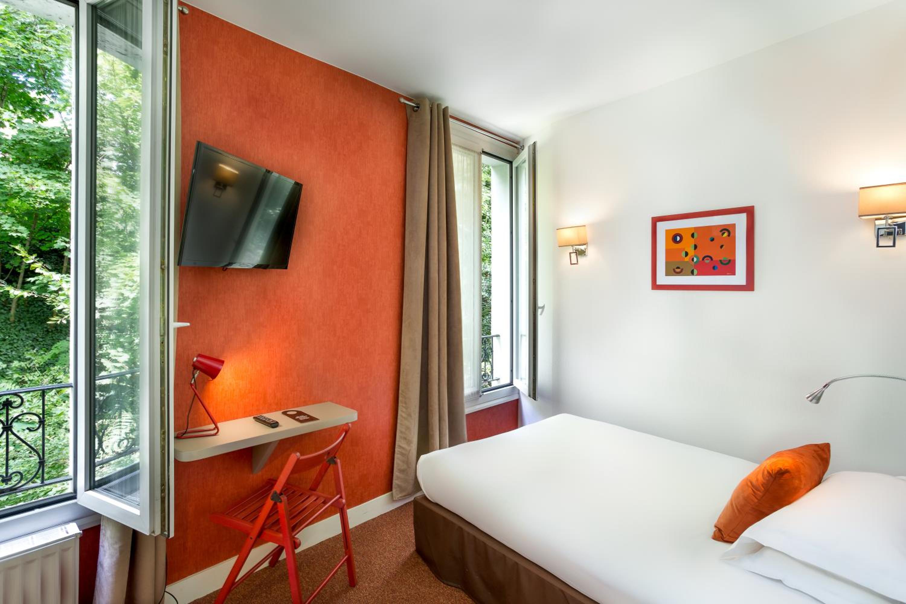 La chambre donnant sur le boulevard et le tramway est peu propice au calme.