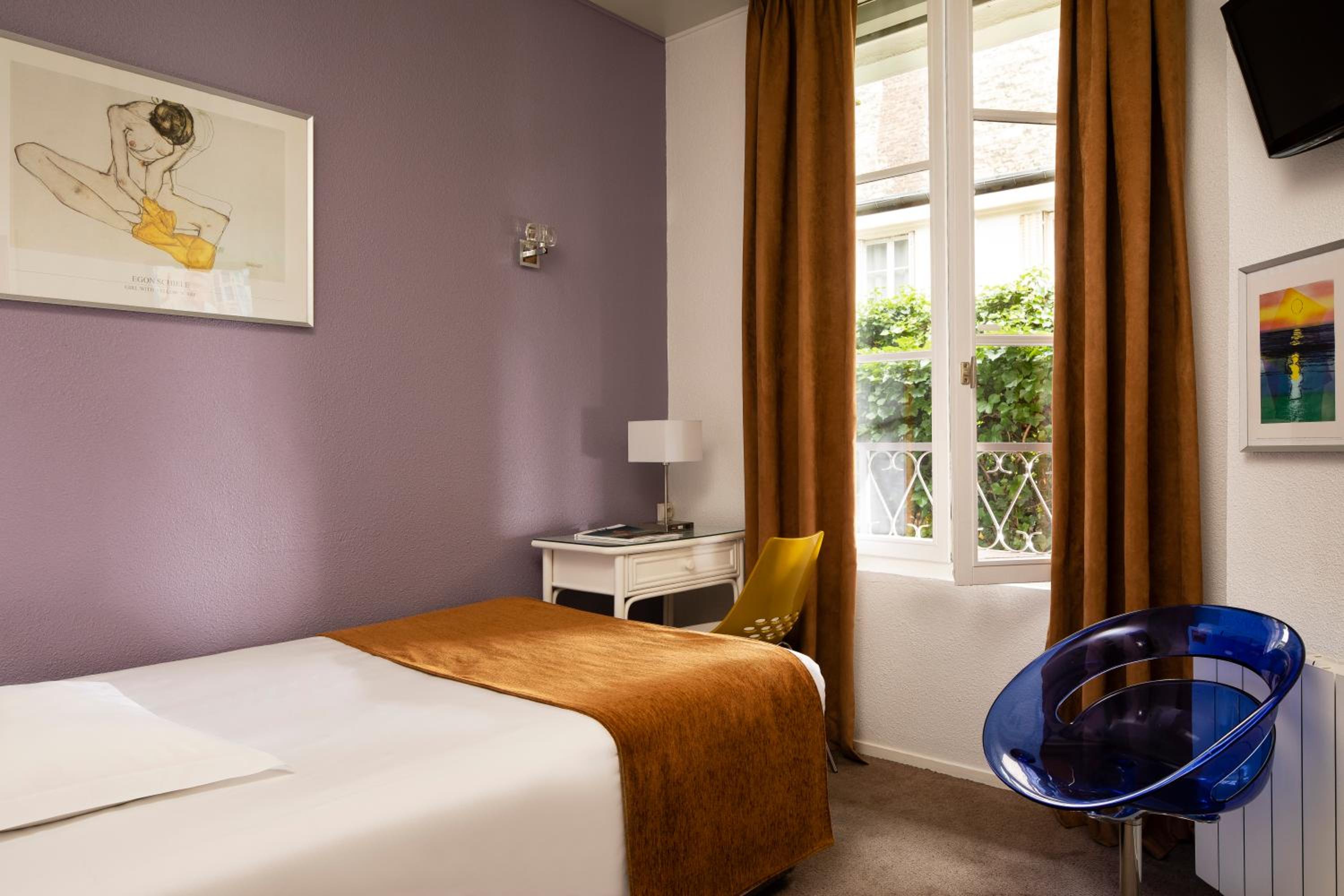 L'hôtel est situé dans une jolie petite cour intérieure, très calme. La chambre donne sur la cour, elle est assez grande, la literie est bonne, nous avons bien dormi. La salle de bain est très bien avec une douche de bonne taille. Le tout est très propre. Je recommande.