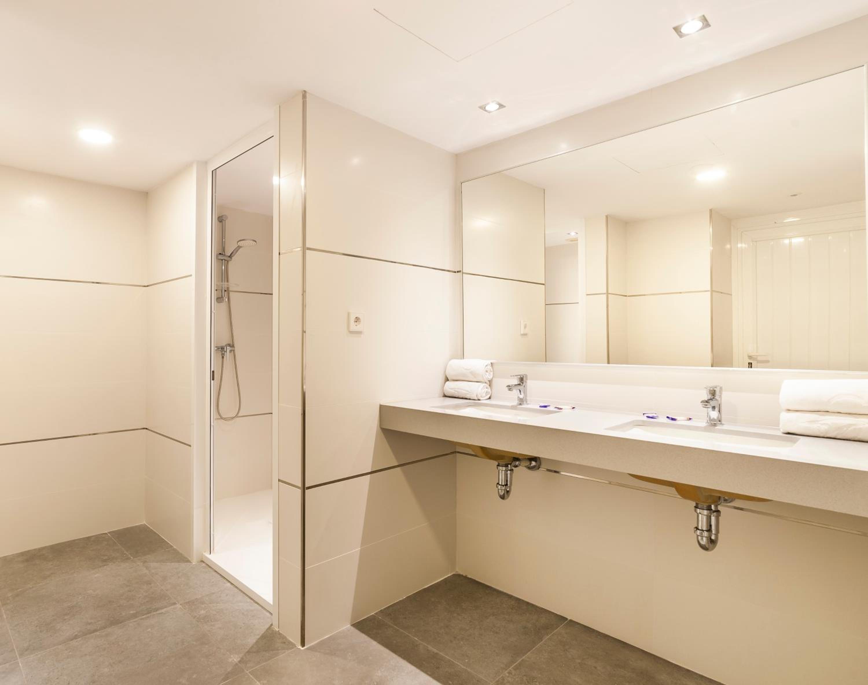 Our room was quite small, it had a fold up bed and 2 singles pushed together. The bathroom shelf was also small, but we managed, and stored our stuff elsewhere. Location of the hotel was good. Supermarket next door and bars and restaurants a 10 minute walk away. Would definitely recommend this hotel.